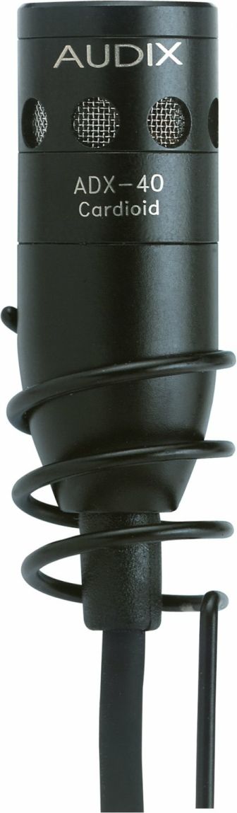 Instrumentalny mikrofon pojemnościowy Audix ADX-40 ADX40 jest zminiaturyzowanym mikrofonem pojemnościowym przeznaczonym do nagłaśniania grup wokalnych, chórów, orkiestr, występów teatralnych, itp. znany z przejrzystości dźwięku, odporności na sprzężenia oraz łatwości w obsłudze. Poza tym ADX40 umożliwia przechwytywanie /przetwarzanie dźwięku z dogodnej dla użytkownika odległości. Kardioidalna charakterystyka ADX40 pozwala mikrofonowi izolować docelowe źródło dźwięku od hałasów dobiegających z otoczenia. ADX40 jest dostępny również w wersji hiperkardioidalnej (model ADX40-HC) umożliwiającej jeszcze większą izolację. z szerokim zakresem częstotliwości, 40 Hz - 20 kHz, ADX40 zapewnia naturalne brzmienie z wyjątkowo dobrym przenoszeniem transjentów. ADX40 zaopatrzony jest w 76-centymetrowy kabel, zewnętrzną osłonę przeciwwiatrową, specjalny druciany stelaż umożliwiający ustawienie mikrofonu w odpowiedniej pozycji oraz zasilacz phantomowy. Wykonany z najwyższej jakości materiałów, ADX40 zawiera mosiężną obudowę i wymienną kapsułę. Dodatkowo, mikrofonowi dedykowana jest cała paleta opcjonalnych akcesoriów. ADX40 dostępny jest w antyodblaskowym czarnym lub białym (ADX40-W) kolorze. Możliwe zastosowania: Overhead dla chórów, grup wokalnych Orkiestry Szkolne przedstawienia, produkcje teatralne Specyfikacja: Typ: mikrofon pojemnościowy (pre-spolaryzowany), zawieszany Charakterystyka kierunkowa: do wyboru: kardioida, superkardioida, dookolna zakres częstotliwości: 40Hz – 20kHz (kardioida/superkardioida), 20Hz – 18kHz (dookolna) Oporność: 250 ohm Napięcie obwodu: 5,2mV(kardioida/superkardioida), 4,1mV (dookolna) Szumy własne: 29dB Odstęp sygnał/szum: 65dB Max SPL: 130dB zasilanie: 9 – 52 Phantom Wykończenie