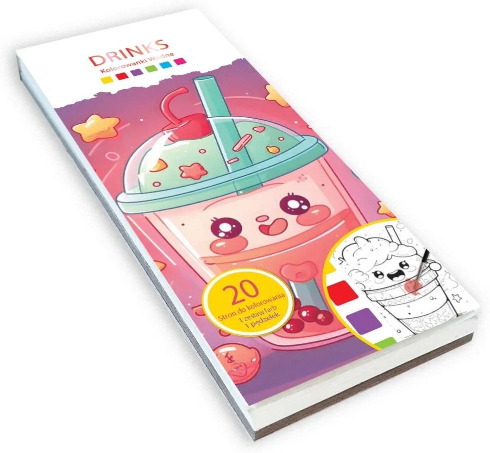 Kolorowanka wodna NAPOJE, wymiary 8x18,8cm (z opak. 8x23,8cm), 20 stron, w zestawie farby i pędzelek