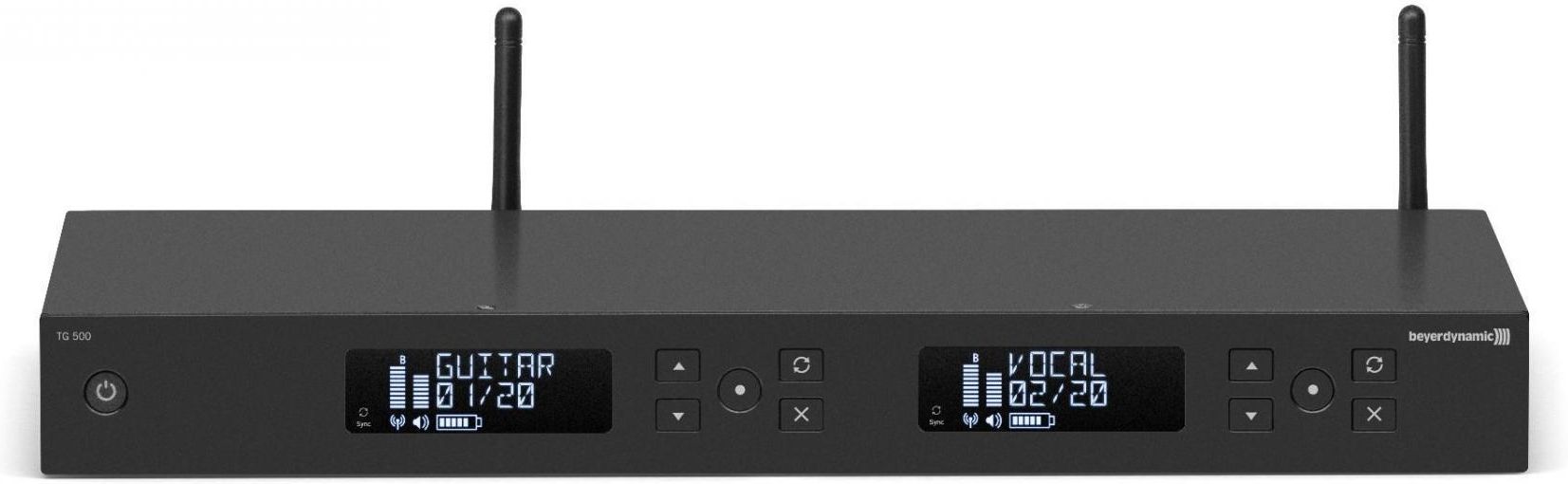 ‌beyerdynamic TG 500DR – odbiornik systemu bezprzewodowego 1780-1810MHz. Sercem każdego systemu bezprzewodowego TG 500 beyerdynamic jest atrakcyjnie zaprojektowany odbiornik z solidną metalową obudową i przejrzystym przednim panelem. Intuicyjnie obsługiwane elementy w połączeniu z podświetlanym wyświetlaczem LCD umożliwiają przyjazną dla użytkownika nawigację po menu. Pasmo przenoszenia częstotliwości systemu wynosi od 45 do 15 kHz. Wyposażony w analogowe wyjścia: zbalansowane XLR oraz zbalansowane jack TRS. Oba kanały audio w podwójnym odbiorniku mogą być odtwarzane przez wspólne wyjście – nie ma wówczas potrzeby korzystania z zewnętrznej konsoli mikserskiej. Odbiornik o wymiarach 19″ (1 U) jest wyposażony w zintegrowany zasilacz i rozgałęźnik antenowy. Odbiornik posiada funkcję zasilania phantom dla zewnętrznych anten. Główne cechy: szerokość pasma przełączania do 40 MHz interfejs podczerwieni do transmisji ustawień z odbiornika do nadajnika podświetlany wyświetlacz LCD wyświetlanie stanu (akumulator, częstotliwość, nazwa) funkcja skanowania wyjścia anteny BNC wyjście XLR i jack (zbalansowane) mieszane wyjście audio zasilanie phantom dla anten (8 V) odłączane anteny BNC funkcja tonu pilota Specyfikacja: zasięg roboczy: do 120 m liczba jednocześnie aktywnych częstotliwości: 18 na zakres (band) pasmo przenoszenia sygnału audio: 45 – 15 kHz zakres dynamiki sygnału audio: 106 dB (A-ważone) tryb pracy: analogowy, bezprzewodowy system mikrofonowy z odbiornikiem różnicowym (diversity) Odbiornik dwukanałowy poziom wyjścia: max. +3 dBV / +5 dBu wyświetlacz: 2 x LCD, podświetlenie koloru białego zasilanie sieciowe: 100 – 240 V AC ze zintegrowanym zasilaczem pobór mocy: 11 W zakres temperatury pracy: 0 do +55 °C waga: 2100 g wymiary : 400 x 175 x 42 mm złącza antenowe: 2 x BNC zasilanie anten: 8 V DC / 150 mA zakresy częstotliwości: 518 – 548 MHz, 606 – 636 MHz, 794 – 832 MHz, 1,785 – 1,805 MHz