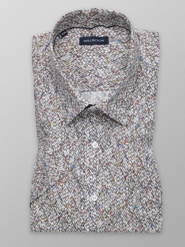 Brązowa klasyczna koszula w drobne kolorowe plamki z klasycznym kołnierzykiem