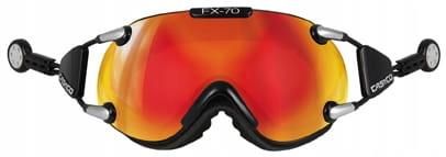 Gogle narciarskie CASCO FX-70 Carbonic pasują do kasków narciarskich CASCO z bocznymi zaczepami magnetycznymi we wszystkich modelach SP-3, CX-3, SP-4 oraz SP-4.1 i SP-6 Airwolf. W połączeniu z tymi kaskami tworzą idealny system chroniący twarz przed wiatrem i śniegiem. Gogle mocowane są do kasku za pomocą bocznych gumek zakończonych specjalnymi magnetycznymi zaczepami. Ten sposób umożliwia łatwe i pewne mocowanie gogli do kasku i łatwe ich odczepianie. Istnieje też możliwość odczepienia tylko jednej strony gogli co pozwala na odsłonięcie twarzy np. w czasie wjazdu wyciągiem i korzystanie z uroków słońca. Szybę wykoanana jest w technologii Carbonic orange o kategorii filtra 1 (na trudne warunki pogodowe). Jest to jedna z najlepszych technologii stosowanych w szybach sportowych - poprawia kontrast widzenia, właściwości anty-fog wynikają z zastosowana podwójnej szyby, jest odporna na zarysowania, łatwa w konserwacji (tylko czysta woda). Gogle mogą być stosowane na okulary korekcyjne. Możliwość regulacji napięcia gumek bocznych. Występują w rozmiarze L do kasków L i XL oraz M do kasków S i M. Do gogli dostarczany jest twardy pokrowiec na suwak oraz miękki woreczek do przechowywania gogli i ich czyszczenia.