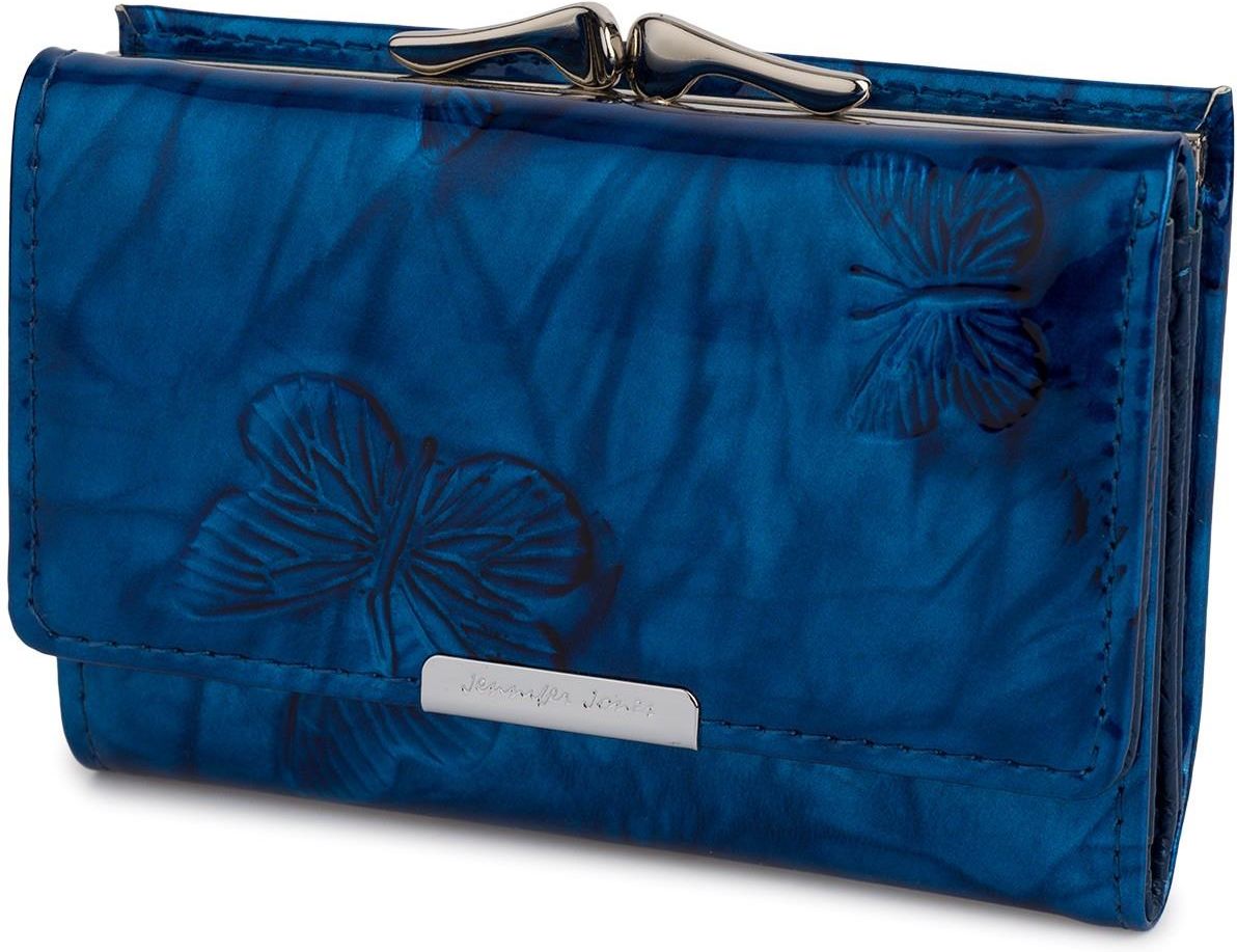 Damski skórzany elegancki portfel mały lakier motyle na karty skóra niebieski 822 Sochaczew
