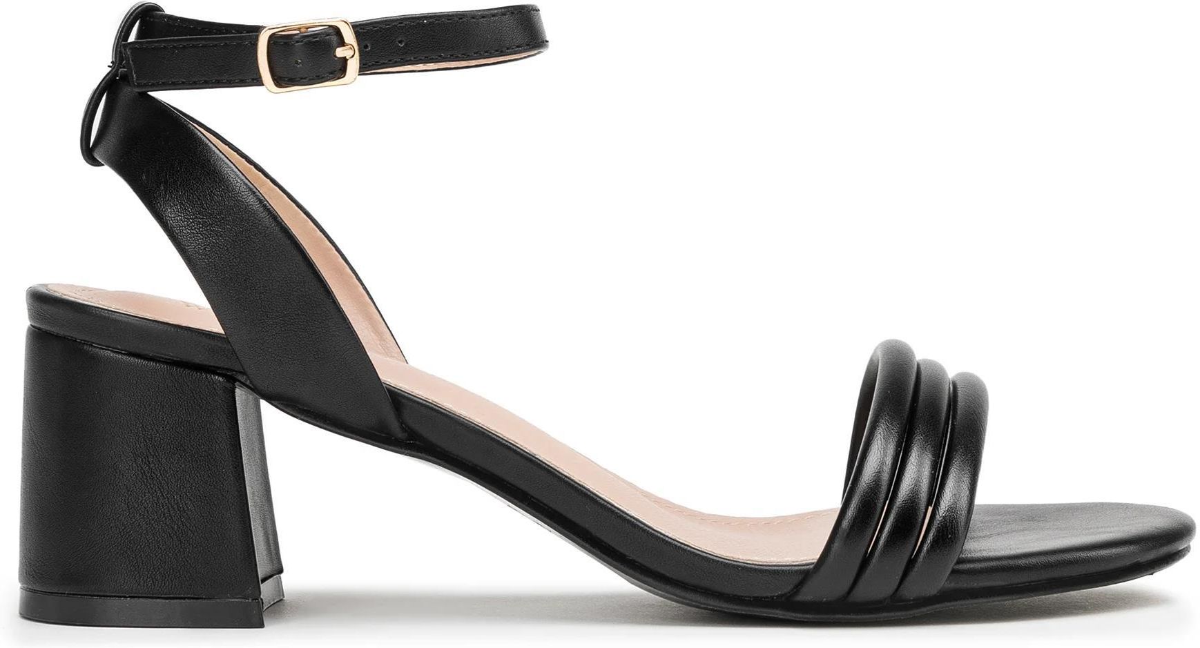 Damskie sandały na słupku. Te wyjątkowe sandały są minimalistyczne, a jednocześnie szalenie kobiece. Przód wykonany z trzech miękkich pasków z ekoskóry wysmukli stopę, a zapięcie wokół kostki podkreśli jej najzgrabniejsze miejsce. Sandały mają wygodny obcas słupek, dzięki któremu wygodnie przechodzisz – lub przetańczysz – w nich wiele godzin. Jest to świetny model na wyjątkowe okazje, takie jak letnie przyjęcia. Możesz je założyć do eleganckiej koronkowej sukienki, jak również do spodni w kant i koszulki. Damskie sandały z paskami na słupku to ponadczasowe buty na wiele okazji.Nasza rada: szukasz sandałów na wesele? Te będą doskonałe. 100% skóra ekologiczna; wkładka z tworzywa sztucznego z miękką wyściółką; podeszwa wykonana z tworzywa sztucznego; nosek migdał. materiał syntetyczny materiał syntetyczny materiał syntetyczny