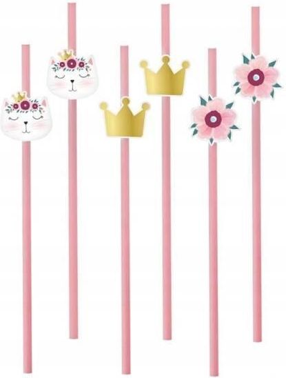 Papierowe słomki do napoi w stylu Kocie urodziny z kotkami i koronami. Opakowanie zawiera: 6 szt.