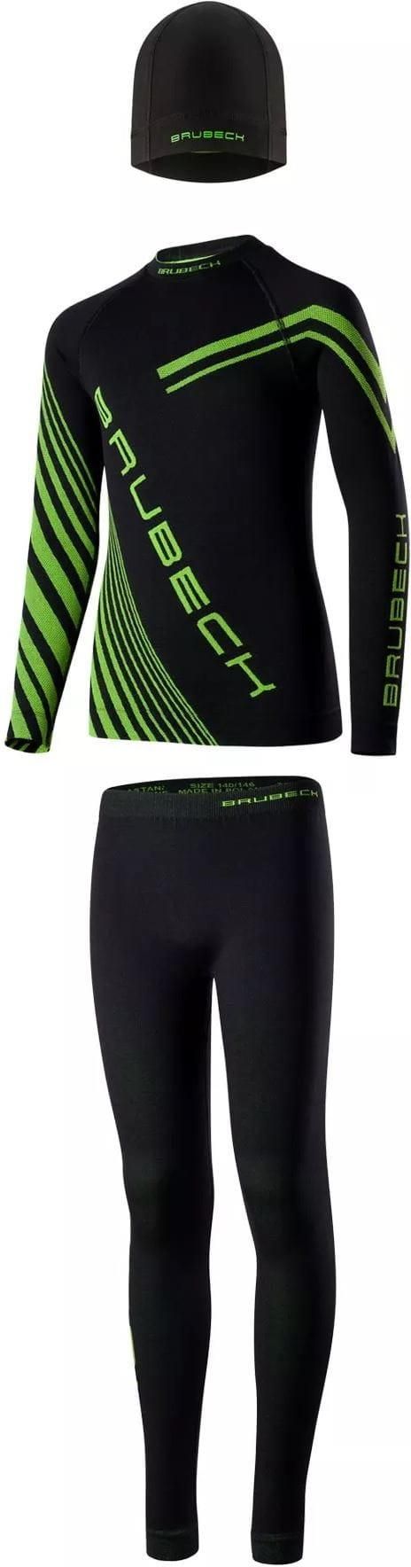 Komplet Bielizny Termoaktywnej Piłkarskiej Z Czapką Brubeck Dry Junior Kp1028J Czarny/Neonowy 128-134 Sochaczew