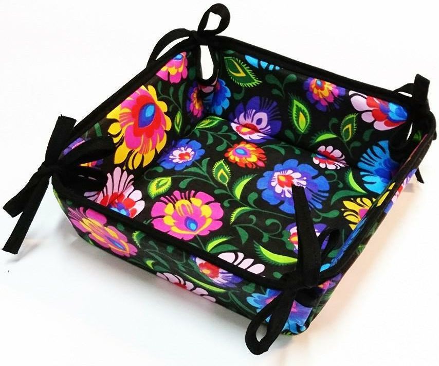 Koszyczek Dekoracyjny Na Pieczywo 1552E Łowicki Czarny Kolorowe Kwiaty Usztywniany Wiązany 216026 Sochaczew