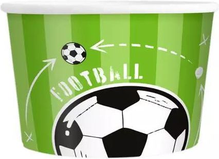 Kubek do lodów Football 6szt. Ten zestaw sześciu papierowych kubeczków z motywem Footbolu doskonale sprawdzi się jako artykuły do codziennego użytku w domu! Kubeczki mają pojemność 150 ml i wysokość ok. 5,5 cm, co sprawia, że idealnie nadają się na lodowe, słone lub słodkie przekąski. Idealne do …