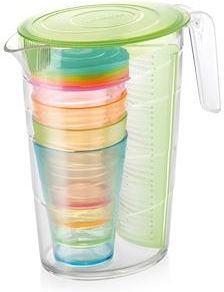 Dzbanek myDRINK 25 l 4 kubki z wieczkiem zielony Doskonały do przygotowywania i podawania orzeźwiających napojów z wyjmowaną wkładką do zaparzania owoców, ziół, warzyw itp. Cztery kubki z wieczkiem chroniącym napoje przed owadami, z otworem na słomki – polecamy słomki myDRINK. Kubki i wieczka można …