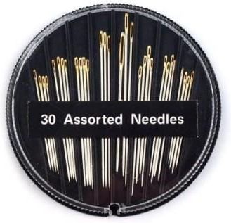 Igły do szycia ręcznego w poręcznym opakowaniu. W pudełku znajduje się 30 szt. igieł o różnej długości i grubości. Igły posiadają złote oczka, aby łatwiej je było nawlec.
