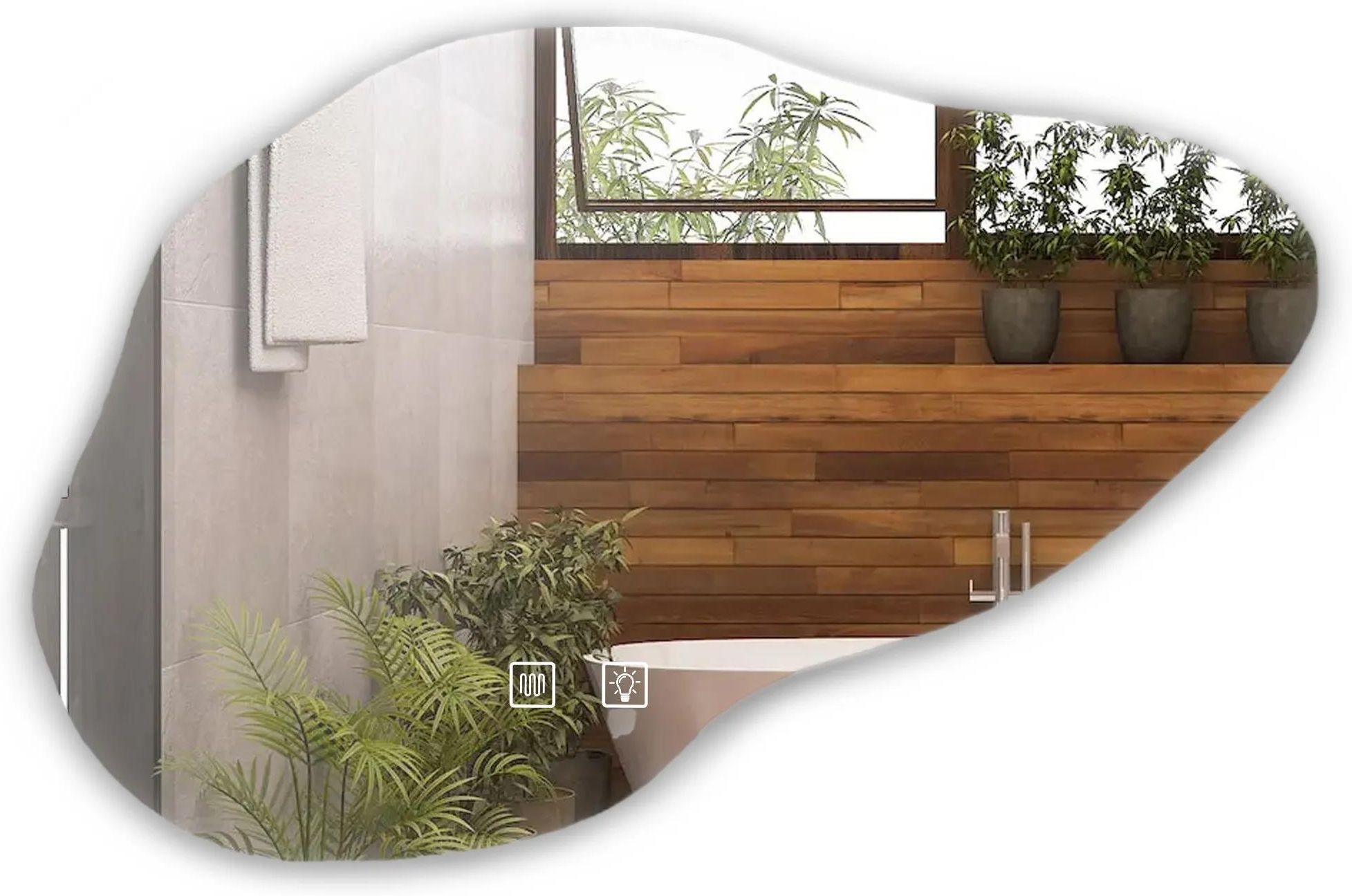 PODŚWIETLANE LUSTRO LED 80X60CM CLOUD B Nowoczesne lustro łazienkowe z zintegrowanym podświetleniem LED, to doskonała propozycja dla osób poszukujących eleganckiego i funkcjonalnego dodatku do swojej łazienki. Lustro o nieregularnym kształcie posiada do wyboru trzy zmieniane dotykowo barwy światła Led – ciepła, neutralną i zimną oraz funkcję podgrzewania zapobiegającą zaparowaniu powierzchni. Przytrzymując palcem podświetlony przycisk na panelu dotykowym możesz regulować intensywność mocy światła. Dane techniczne Wysokość: 70 cm Szerokość: 100 cm Grubość lustra: 4 mm Głębokość: 2 cm Moc: 12 W Liczba diod LED: 60/mb Żywotność diod LED: do 30 000 h Napięcie wejściowe: 220-240V~; AC 50-60Hz Klasa szczelności: IP54 Barwa światła: zimna 6000K, neutralna 4000K, ciepła 3000K (do wyboru) Długość przewodu zasilającego z wtyczką: 110cm (kolor biały) Stalowa zawieszka wklejona do lustra Model: CLOUD B Zmiana barwy światła Lustro oferuje możliwość personalizacji atmosfery za pomocą zmiany barwy światła LED, umożliwiając użytkownikowi wybór pomiędzy trzema różnymi kolorami światła. Obsługa tej funkcji jest intuicyjna, wymaga jedynie krótkich naciśnięć przycisku dotykowego na powierzchni lustra: Barwa ciepła (3000K) jest idealna do relaksu i stworzenia atmosfery sprzyjającej wypoczynkowi Barwa naturalna (4000K) jest uniwersalna, nie męczy oczu, co sprawia, że jest doskonałym wyborem do codziennych czynności Barwa zimna (6000K) sprzyja skupieniu i mobilizacji, doskonale nadając się do momentów wymagających koncentracji Regulacja natężenia światła Lustro z funkcją regulacji natężenia światła to praktyczne i nowoczesne rozwiązanie, które dostosowuje się do indywidualnych preferencji użytkownika. Dzięki zintegrowanemu ściemniaczowi, obsługiwanemu przez podświetlone pole dotykowe, użytkownik może łatwo regulować intensywność światła. Krótkie dotknięcie aktywuje lub dezaktywuje oświetlenie, podczas gdy przytrzymanie przycisku powoduje wejście w tryb regulacji natężenia. Prostym gest palcem we wskazanym miejscu pozwala swobodnie dostosować jasność światła do konkretnych potrzeb. Dodatkowo, podświetlony przełącznik dotykowy na tafli lustra, świecący na niebiesko, stanowi praktyczny wskaźnik aktywności funkcji, ułatwiając obsługę. Podgrzewane lustro bez pary Lustro z funkcją podgrzewania i funkcją Anti-Fog to nowoczesne i funkcjonalne rozwiązanie, które łączy w sobie praktyczność z elegancją. Jedną z głównych zalet tego lustra jest funkcja podgrzewania, która skutecznie zapobiega zaparowaniu powierzchni. Mata grzewcza umieszczona na tyle lustra eliminuje kondensację, zapewniając zawsze czyste i klarowne odbicie nawet po gorącej kąpieli. Aktywacja funkcji podgrzewania odbywa się za pomocą włącznika dotykowego, co sprawia, że obsługa jest intuicyjna i wygodna.