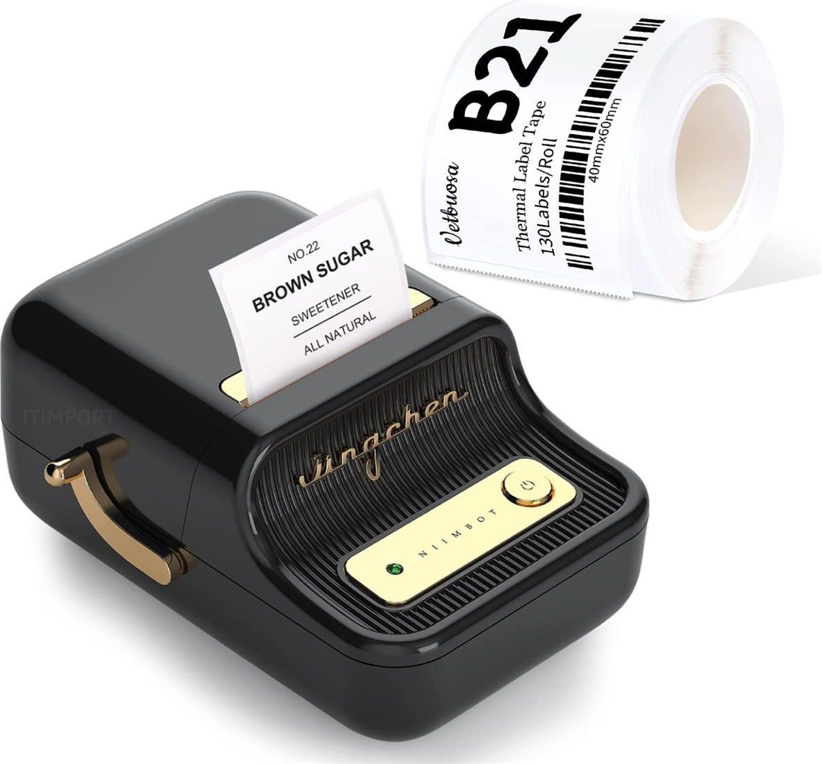 Przenośna drukarka etykiet NiimbotNiimbotreg; B21 to bezprzewodowa drukarka, która potrafi wykonać kilka samoprzylepnych etykiet na sekundę, jest to drukarka termiczna więc tusz nigdy Ci się nie skończy. Drukuj etykiety do domu, sklepu, magazynu, szkoły lub gdziekolwiek zechcesz! Nowa druga generacja posiada wbudowany akumulator 1200mAh, który pozwala na tygodnie pracy bez ładowania. Wystarczy zainstalować aplikację NIIMBOT, połączyć się z drukarką przez Bluetooth i gotowe! Rolka 50x30mm Gratis!Prawdziwa rewolucjaEtykiety są samoprzylepne, nie zostawiają kleju, są wodoszczelne i bardzo wytrzymałe. Rolki w różnych rozmiarach kupisz w naszym sklepie. Drukarka jest bardzo prosta w użyciu – wystarczy ją włączyć przytrzymując główny przycisk kilka sekund, uruchomić aplikację w telefonie, podłączyć drukarkę z listy urządzeń, zaprojektować naklejkę i drukować! Jednorazowo możesz wydrukować 1 kopię naklejki lub nawet 100 naklejek zaprojektowanych przez siebie. Niimbot B21 to drukarka w oldschoolowym wydaniu, która z pewnością ucieszy każde oko.Niimbot B21 - to proste!Nie ważne czy prowadzisz firmę, uczysz się, pracujesz czy po prostu chcesz nakleić etykietę na przygotowane konfitury, Niimbot jest wielofunkcyjny i ma nie ograniczone możliwości edycji etykiet. Umieść rolkę etykiet samoprzylepnych, dostosuj treść i wydrukuj swoją etykietę!Drukarka Niimbot - obszerne zastosowanie Wydruk cen, dat przydatności do spożycia, godziny produkcji oraz partii produkcyjnych Dla lekarzy i prywatnych gabinetów Dla uczniów i nauczycieli, oklejanie zeszytów, dzienników Dla domu i rodziny – oznaczaj przyprawy, kawy i herbaty, zrób porządek w pojemnikach Dla restauracji i do domowej kuchni do oznaczania mrożonek – odporne na mróz, olej i wodę naklejki poradzą sobie w każdych warunkach Dla sprzedawców – wpisz lub zeskanuj numer kodu i wydrukuj pasek EAN-13 lub inny kod, aplikacja tworzy także wydruki seryjne Drukuj kody QR na produktach – aplikacja sama stworzy kod do wydruku na podstawie tekstu lub skanu innego kodu Dla kolekcjonerów – do oznaczania swoich zbiorów Dla informatyków i pracowników biurowych – oznaczaj kable i podzespoły Dla każdego – każda osoba znajdzie zastosowanie NIIMBOTA Aplikacja na iOS oraz Android od NiimbotDarmową Aplikację NIIMBOT możesz pobrać w sklepie Appstore lub GooglePlay, prosimy o korzystanie tylko z oryginalnych aplikacji pobranych w autoryzowanym sklepie obsługującym twój system operacyjny w telefonie. Udało się! We współpracy z producentem skończyliśmy tłumaczyć aplikację NIIMBOT do obsługi naszych drukarek – już teraz jest dostępna w polskiej wersji językowej (beta). Po uruchomieniu aplikacji: Me > Settings > Language > Polski. Dlaczego drukarka termiczna? Steruj z telefonu Pobierz aplikację NIIMBOT i projektuj swoje etykiety w dowolny sposób Funkcjonalność Drukuj etykiety, kody EAN-13 i informacje o sprzedawcy lub składniki danego produktu Tusz się nie kończy NIIMBOOT to kompaktowa drukarka termiczna, co za tym idzie tusz nigdy się nie kończy Dla każdego Drukarka jest prosta w obsłudze i ma wiele możliwości, skorzysta z niej zarówno informatyk jak i uczeń szkoły podstawowej Najważniejsze cechy drukarki termicznej do etykiet Niimbot B21Poznaj detale, które wyróżniają tę drukarkę naklejek - Rodzaj wydruku: termiczny - Prędkość wydruku: 30-60 mm/s - Rozdzielczość: 203 dpi - Najlepsza efektywność: 48 mm - Szerokość papieru 20~50 mm - Połączenie: Bluetooth - Bateria: litowa 1200 mAh - Czas pracy bez przerwy: 4-5 h - Języki: m.in. angielski, polski - Wymiar drukarki: 130 x 50 x 95 mm - Waga netto z baterią: 300 g - Waga z opakowaniem: 505 g - Materiał: ABS + PC + metal - Kolor: czarny