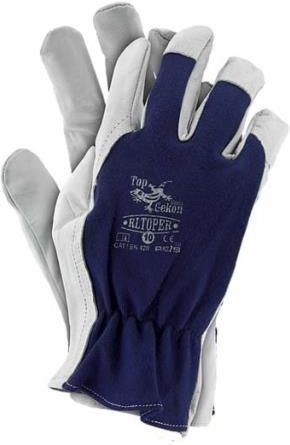 Rękawice ochronne wykonane z wysokiej jakości skóry koziej w jasnym kolorze, połączonej z wysokiej jakości granatową tkaniną.Parametry:- skóra kozia licowa, miękka skóra wysokiej jakości - doskonały komfort pracy,- całodłonicowe - część chwytna wykonana z jednego kawałka skóry, - wierzch wykonany z elastycznej tkaniny - idealne dopasowanie do dłoni, - ze względu na wykonanie dłonicy z jednolitej skóry, wykazują się większą wytrzymałością i odpornością na przetarcia,- rozmiar 10.EAN: 5907522903374