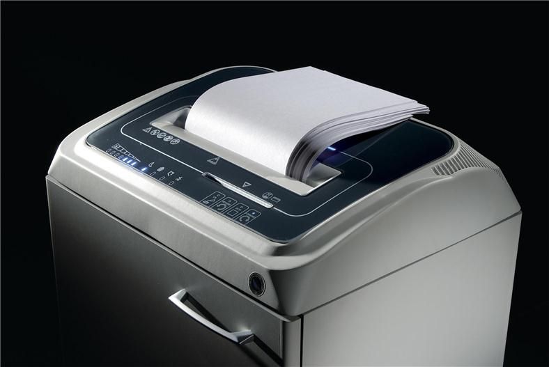 Niszczarka do papieru Kobra 245 S5 TS ES jest mocnym urządzeniem przeznaczonym do średniej wielkości biur. Ze względu na możliwość ciągłej pracy przez całą dobę polecana do miejsc gdzie istnieje zmianowy system pracy. Niszczarka oferuje dokładne niszczenie z wysokimi poziomami tajnościami i dlatego jest idealnym modelem do miejsc gdzie istnieje potrzeba niszczenia ważnych lub/i wrażliwych danych. Dla instytucji odroczony termin płatności! szeroka szczelina 245 mm umożliwiająca bezproblemowe niszczenie kartek A4 niszczy na ścinki 5,8 mm potrafi zniszczyć 29 kartek standardowego papieru ksero poradzi sobie ze zniszczeniem płyt CD, kart plastikowych, zszywek i spinaczy dwie osobne szczeliny do niszczenia papieru oraz nośników danych i kart plastikowych poziom bezpieczeństwa DIN 66399: P-2/ O-2/ T-2/ E-2 pokrywa chroniąca użytkownika w czasie niszczenia nośników danych pojemność pojemnika na ścinki 40 litrów Super Potential Power System - wytrzymały napęd z łańcuchem dający jeszcze większą moc w czasie niszczenia osobny pojemnik na płyty CD i karty plastikowe umożliwia segregację odpadów rozmiar niszczarki 400x360x610 mm automatyczny start/stop funkcja Turbo Power z dodatkową wiązką mocy niszczącą dodatkową ilość kartek lub likwidującą zakleszczenia papieru system Energy smart - nie pobiera prądu w trybie czuwania zabezpieczenie silnika przed przegrzaniem wytrzymałe noże, niewrażliwe na zszywki i spinacze cichy silnik, tylko do 54 dB silnik niszczarki przystosowany do pracy ciągłej bezpieczny dla użytkownika - automatyczne odcięcie zasilania w przypadku zakleszczenia papieru lub wyjęcia kosza na ścinki dioda informująca o wyjętym koszu niszczenie papierów komputerowych moc 460 W Eco-Friendly – kosz bez konieczności stosowania worków czujnik przepełnienia kosza Waga 24 kg 3 lata gwarancji producenta na urządzenie, gwarancja dożywotnia na noże tnące i na napęd z łańcuchem