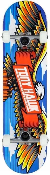 Kompletna Deskorolka Tony Hawk 8" x 31.5" Wingspan Multi TSS-COM-0004 Deskorolka Tony Hawk SS 180 Wingspan Multi 8" Tony Hawk - legendarny Skateboarder Obecnie najbardziej rozpoznawalna postać sportów extremalnych na świecie. Tony Hawk miał zaledwie 9 lat, kiedy brat odmienił jego życie dając mu deskorolkę z włókna szklanego Bahne. W wieku 14 lat przeszedł na zawodowstwo, a mając 16 lat był powszechnie rozpoznawalny jako najlepszy skateboarder na ziemi. Deskorolka polecana dla początkujących i średnio-zaawansowanych skateboarderów. Cechy charakterystyczne długość: 80 cm (31,5") szerokość: 20,3 cm (8") kółka: Tony Hawk Signature Series średnica kółek: 54 mm twardość kółek: 95A łożyska: ABEC-3