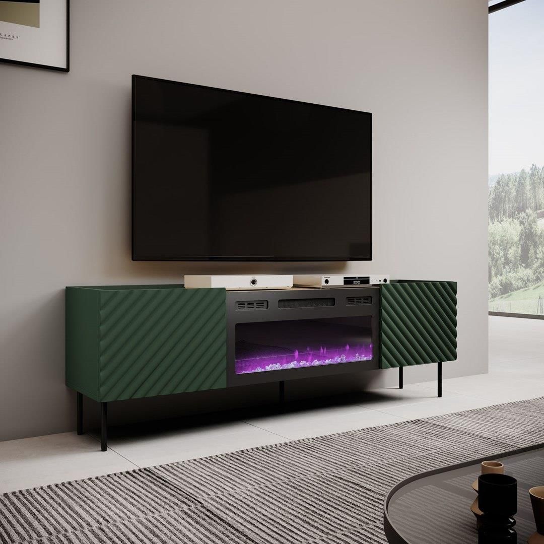 Cama Meble Szafka RTV z kominkiem elektrycznym ONDA 180,5x40xH58,39 zieleń (stojąca lub wisząca) Sokołów Podlaski