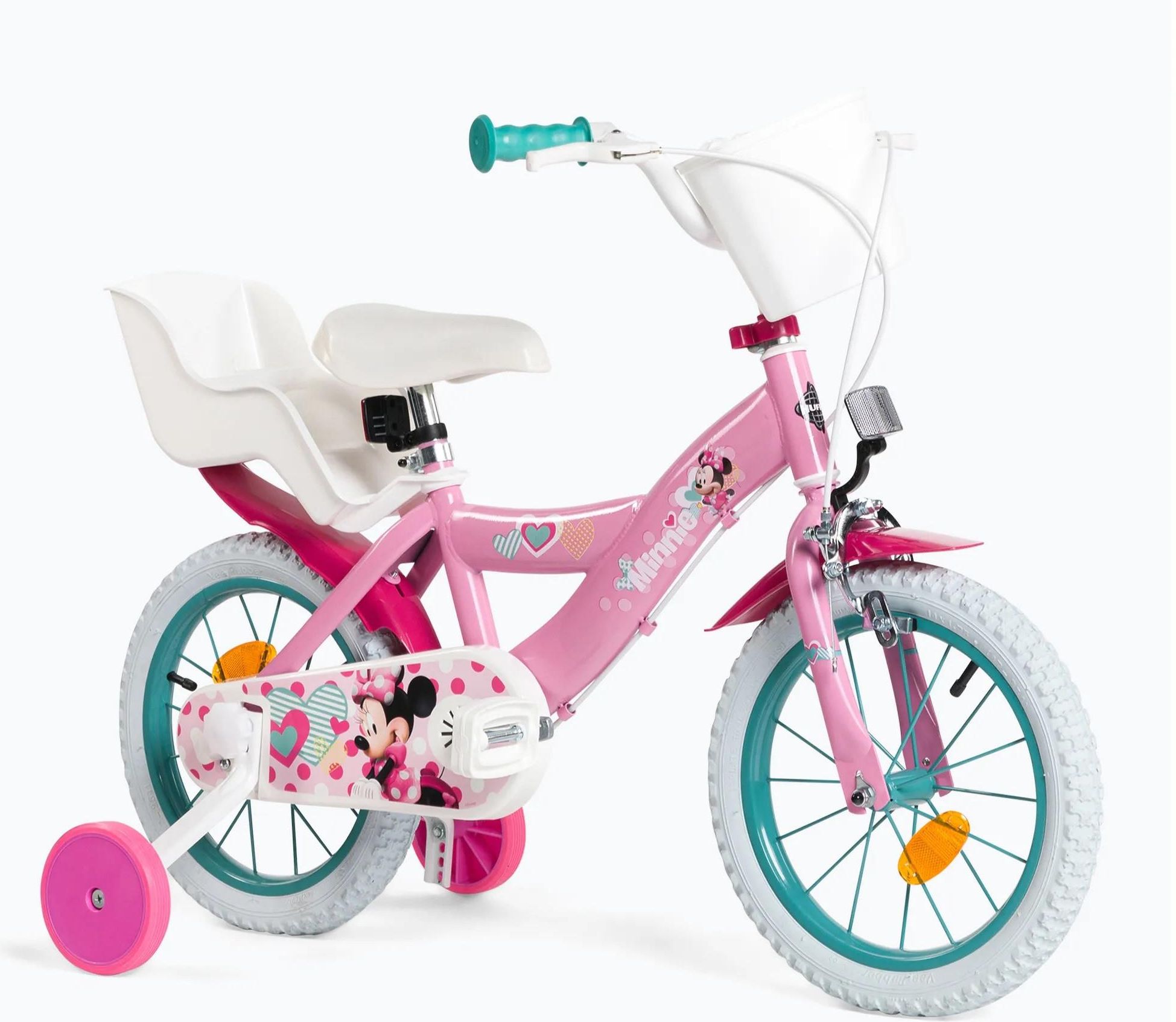 Rowerek dziecięcy Disney MINNIE 14" HUFFY Kolor produktu: Różowy Właściwe wykorzystanie: Asfalt Zalecany wiek (min): 4 lata Grupa docelowa: Dziecko Dzwonek rowerowy: Nie Osłona łańcucha w zestawie: Tak Błotniki: Przód i tył Koła boczne: Tak Bidon z uchwytem: Nie Półka na bagaż: Przód i tył Hamulec ręczny: Tak Styl: Sportowy Dedykowana płeć: Dziewczyna Materiały: Tworzywo sztuczne, Stal Produkt wstępnie zmontowany: Tak Typ kół: Pompowane Regulowane siedzisko: Tak Rodzaj hamulca: Hamulec przód i tył caliper Liczba kół: 4 szt. Antypoślizgowy uchwyt: Tak Waga produktu: 10 kg Rozmiar koła: 35,6 cm (14") pkwiu: 32.40.31.0