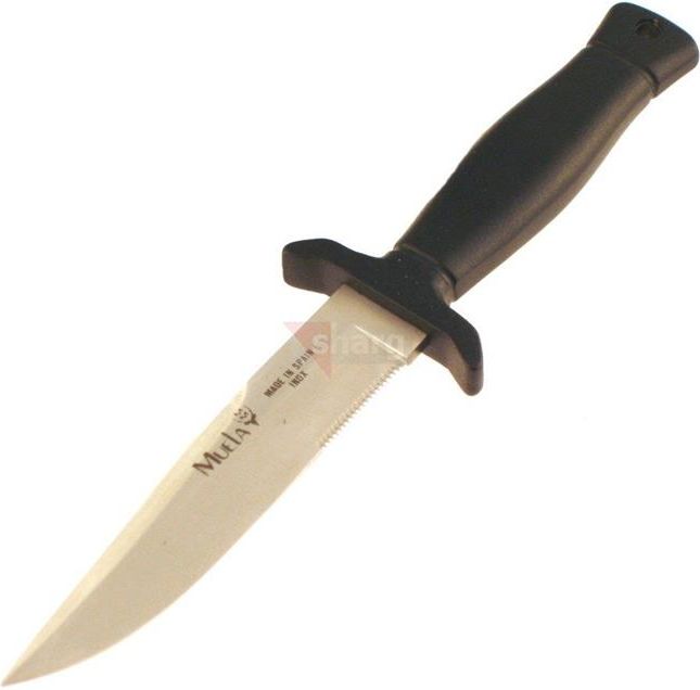 Nóż Muela MK-12 Boot to świetny wybór dla wszystkich poszukujących doskonałej jakości noży taktycznych. Łączy w sobie zastosowanie najlepszych materiałów, estetykę wykonania oraz funkcjonalność i poręczność. Ostrze noża jest ze stali Inox SS – odpornej na korozję, uszkodzenia mechaniczne, chemiczne i termiczne, bardzo solidnej i wytrzymałej. Lekko zakrzywiona głownia posiada krawędź tnącą half serrated – w połowie gładką, w połowie ząbkowaną. Dzięki temu nóż będzie się sprawdzał w rozcinaniu mocnych materiałów włóknistych. Rękojeść jest wykonana z metalu, powlekana warstwą ochronną w kolorze czarnym. Jest ergonomicznie wyprofilowana, ma dobrą przyczepność. Nie wyślizguje się z dłoni, pozwala na precyzyjne operowanie nożem. Na końcu uchwytu znajduje się otwór, „oczko”, przez które można przewlec linkę, smycz lub sznurek i zawiesić nóż w wygodnym i bezpiecznym miejscu, np. przy szlufce paska. Dodatkowo, w zestawie znajduje się eleganckie etui. Jest wykonane ze skóry – a więc moce i trwałe. Zwiększa bezpieczeństwo przechowywania noża. Etui zostało wyposażone w klips, który można zaczepić o krawędź kieszeni lub pasek. Dane techniczne: Długość ostrza: 120 mm, Waga: 130 g, Materiał rękojeści: metal, Materiał ostrza: stal nierdzewna Inox SS. XYST