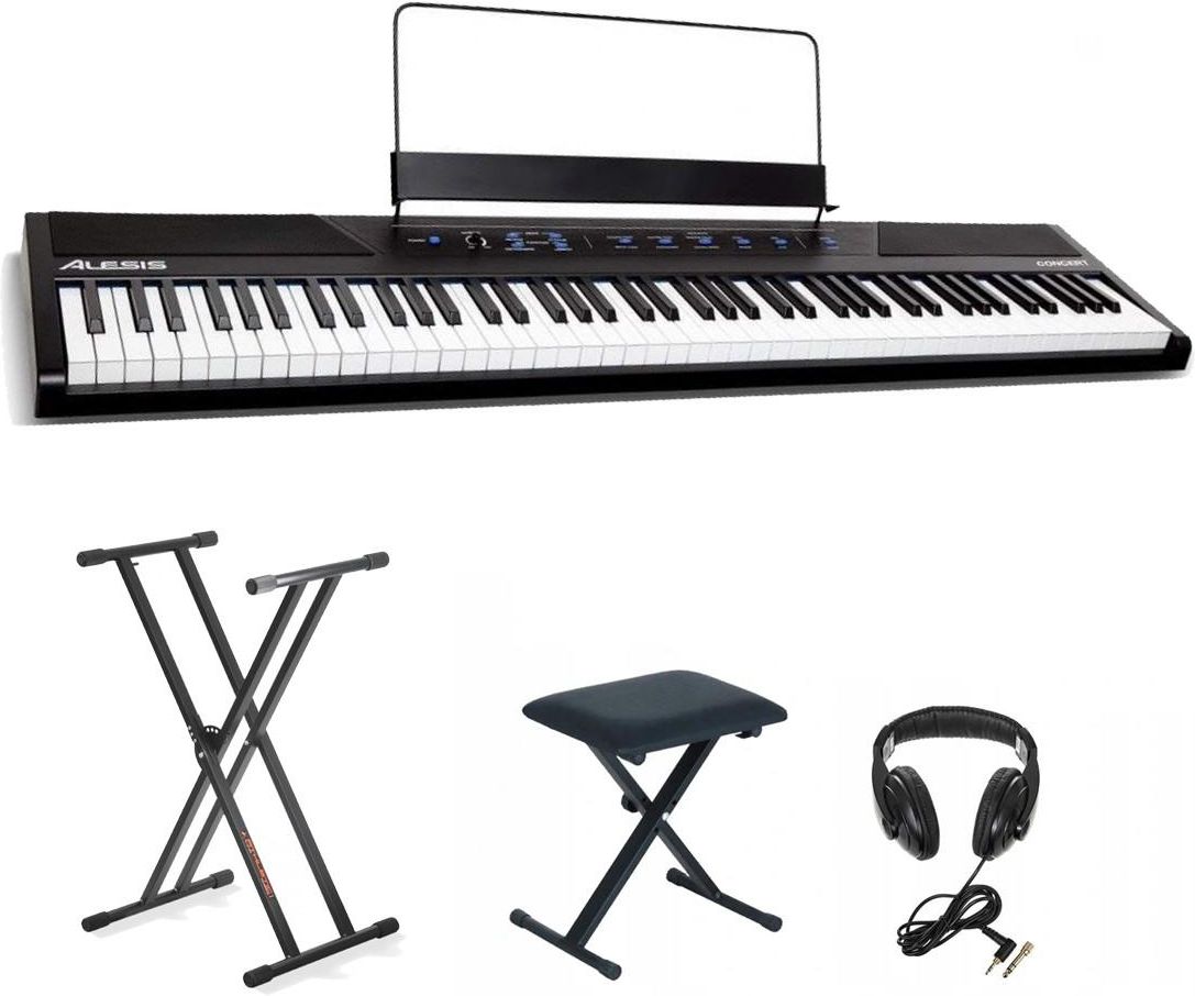 PIANINO CYFROWE ALESIS CONCERT +ŁAWA +SŁUCHAWKI + STATYW Alesis Concert Alesis Concert to w pełni funkcjonalne pianino cyfrowe z 88 pełnowymiarowymi, półważonymi klawiszami z regulowaną reakcją na dotyk. Koncert posiada 10 realistycznych, wbudowanych głosów: Pianino akustyczne, jasne pianino, …