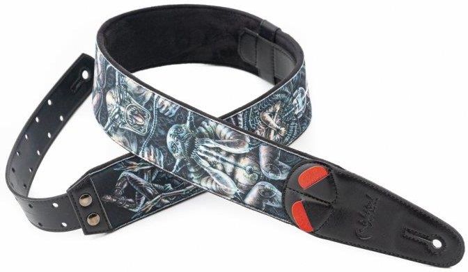 - Profesjonalny pasek do gitary i basu - Inspirowany kultowym filmem SEVEN - Najwyższej jakości materiały ECO - Zapewnia komfort gry - Szerokość: 2,3" (6 cm) - Regulowana długość: 37,4" (95 cm) - 59" (150 cm) - Materiał: Syntetyczny - Kolor: wielokolorowy - Wyprodukowany w Hiszpanii Ten pasek reprezentuje 7 grzechów głównych. „Grzechem głównym jest to, co ma nadmiernie pożądany cel, tak że w swoim pragnieniu człowiek popełnia wiele grzechów, z których wszystkie mają swój początek w tym występku jako ich głównym źródle”. Tomasz z Akwinu. „Wady można skatalogować według cnót, którym się sprzeciwiają, lub też można je odnieść do głównych grzechów, które doświadczenie chrześcijańskie wyróżniło za św. Janem Kasjanem i św. Grzegorzem Wielkim (Mor. 31, 45). Nazywane są grzechami głównymi, ponieważ rodzą inne grzechy, inne wady: są to pycha, skąpstwo, zawiść, gniew, żądza, obżarstwo i lenistwo”. Katechizm Kościoła Katolickiego, nr. 1866. Ten pasek został wymyślony, zaprojektowany i wykonany przez artystkę Xenię Grey. Symbole na tym pasku są mocne i wyraziste, czasem kontrowersyjne. Ten pasek może być dla muzyka, który uwielbia szokować lub uwielbia dzielić się ciekawą wiedzą o niezwykłych rzeczach, która sprawia, że my, jako ludzie, jesteśmy ciekawi i chcą wiedzieć więcej, czy nas przeraża, bawi, czy ekscytuje. Cóż, ten pasek z pewnością stworzy rozmowę i przełamie lody, gdziekolwiek jesteś, a kto wie, że z tak wieloma symbolicznymi szczegółami może posiąść magię, której szukasz jako kreatywny muzyk. Zdecydowanie dla odważnych ludzi! Ten pasek ma 6 cm szerokości oraz regulację długości od 95 do 145 cm z ekskluzywnym systemem RAS (Righton Adjustment System), aby dostosować pasek do własnych preferencji. Pasek wykonany jest z zaawansowanych technologicznie materiałów syntetycznych. Materiały zostały przetestowane, dzięki czemu możemy zapewnić ich trwałość. Jak w całej kolekcji MOJO, ten pasek jest wykonany z ideą wegańską - bez okrucieństwa wobec zwierząt. Posiada również wyściółkę z mikrofibry, która nie ślizga się, dzięki czemu zapobiega powstawaniu śladów potu. Pasek jest wyściełany 5mm lateksem, dzięki czemu jest bardzo wygodny i lekki. W przedniej wszywce znajdują się dwie małe kieszonki na kostki, a w tylnej wszywce znajdują się dwa nacięcia dające szybki dostęp do piórek. Świetnie wykonany pasek o prostym designie, który zawsze dobrze wygląda. RAS (RIGHTON! SYSTEM REGULACJI) Ekskluzywny system regulacji RightOn (RAS), który umożliwia regulację paska w łatwy i praktyczny sposób, z najdłuższym zakresem regulacji na rynku. System RAS może być zewnętrzny lub wewnętrzny w zależności od stylu. PICK HOLDER NA KOŃCÓWKACH PASKA Uchwyt kostek umieszczony z przodu umożliwia łatwy i szybki dostęp. To podwójne rozwiązanie dla piórek jest kompatybilne z większością istniejących modeli na rynku. PIÓRKA ZAWSZE POD RĘKĄ Uchwyt na kostki również znajduje się na końcu paska. Są to 3 proste nacięcia do wprowadzenia piórek, umożliwiające szybszy i bardziej intuicyjny dostęp. WYPEŁNIENIE LATEKSEM Wyściełane lateksem najwyższej jakości, który zapewnia duży komfort i nie wchłania potu. Lateks pokryty jest cienką mikrofibrą, która zapewnia miękkość w dotyku i doskonały chwyt na ramieniu dzięki czemu komfort jest dużo wyższy niż w innych paskach. VEGAN Do wykonania tego paska, użyto materiałów wegańskich, które nie zawierają żadnych części zwierzęcych, ten przedmiot jest w 100% wolny produtków zwierzęcych.