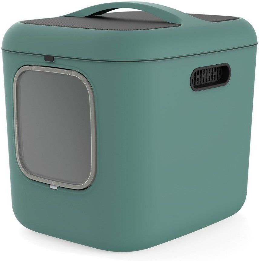 Rotho kuweta zamknięta BIALA XL 61,4 cm x 49,9 cm x 57,6 cm zielona ROTHO Biala XL zielona - kuweta dla kota Każdy kot potrzebuje odpowiedniego miejsca, w którym będzie mógł swobodnie załatwiać swoje potrzeby fizjologiczne, nie odczuwając stresu ani dyskomfortu. Odpowiednio dobrana kuweta to kluczowy element codziennej opieki nad zwierzęciem, wpływający nie tylko na jego samopoczucie, ale także na higienę w domu. Rotho Biala XL to model, który spełnia oczekiwania zarówno kocich opiekunów, jak i samych czworonogów, oferując im przestrzeń dostosowaną do naturalnych potrzeb. Wygodna konstrukcja zapewnia kotu komfort korzystania, a zastosowane rozwiązania technologiczne ułatwiają utrzymanie czystości i świeżości w otoczeniu. Dla osób, które poszukują kuwety łączącej dużą pojemność, skuteczny system filtracji oraz łatwość czyszczenia, ten model będzie doskonałym wyborem. Idealne wymiary dla dużych kotów Każdy kot zasługuje na przestronne i wygodne miejsce, w którym będzie czuł się komfortowo. Nie wszystkie kuwety dostępne na rynku spełniają wymagania większych ras, takich jak maine coon czy norweski leśny, a także domów, w których mieszka więcej niż jeden kot. Rotho Biala XL została opracowana z myślą o zwierzętach potrzebujących większej przestrzeni, dzięki czemu pozwala na swobodne poruszanie się wewnątrz. Duża wysokość ścianki zapewnia ochronę przed rozsypywaniem żwirku, a szeroka podstawa umożliwia naturalne kopanie bez ryzyka zabrudzenia otoczenia. Nawet jeśli z kuwety korzysta kilka kotów, jej pojemność pozwala na dłuższe utrzymanie higieny, co znacząco wpływa na komfort zwierząt i ich opiekunów. Nowoczesny design, który pasuje do każdego wnętrza Kuweta to nie tylko element kociej wyprawki, ale także część wyposażenia domu, dlatego tak istotne jest, by dobrze komponowała się z otoczeniem. Rotho Biala XL wyróżnia się nowoczesnym i eleganckim wyglądem, dzięki czemu można ją umieścić w dowolnym pomieszczeniu, bez obaw o zaburzenie estetyki wnętrza. Uniwersalna, stonowana kolorystyka pozwala na łatwe dopasowanie do różnych aranżacji, niezależnie od tego, czy kuweta znajdzie się w łazience, przedpokoju, salonie czy kocim pokoju. Gładkie, zaokrąglone krawędzie nadają jej minimalistyczny charakter, a jednocześnie zapewniają łatwość czyszczenia. System filtracji zapobiegający rozprzestrzenianiu się zapachów Nieprzyjemne zapachy to jeden z największych problemów, z jakimi borykają się opiekunowie kotów. Rotho Biala XL została wyposażona w zaawansowany system filtracji powietrza, który skutecznie neutralizuje niechciane aromaty. Wewnątrz kuwety znajdują się dwa filtry węglowe, które pochłaniają cząsteczki zapachowe, zapobiegając ich rozprzestrzenianiu się po domu. Dzięki temu pomieszczenie, w którym stoi kuweta, pozostaje świeże i wolne od nieprzyjemnych woni. To rozwiązanie jest szczególnie istotne w mieszkaniach, gdzie przestrzeń jest ograniczona, a kuweta znajduje się w pobliżu codziennych stref użytkowych, takich jak salon czy sypialnia. Solidne zamknięcie dzięki magnetycznym drzwiczkom Wiele kotów preferuje korzystanie z kuwety, która zapewnia im prywatność i poczucie bezpieczeństwa. Zamykana konstrukcja Rotho Biala XL skutecznie spełnia tę funkcję, a zastosowanie magnetycznego mechanizmu sprawia, że drzwiczki zawsze wracają do pozycji wyjściowej po przejściu kota. Dzięki temu ograniczone zostaje roznoszenie zapachów, a żwirek nie wydostaje się na zewnątrz, co minimalizuje konieczność częstego sprzątania otoczenia. Odpowiednia wielkość wejścia sprawia, że nawet większe koty mogą swobodnie korzystać z kuwety, nie odczuwając ciasnoty czy ograniczenia ruchu. Łatwa obsługa i ergonomiczna budowa Przenoszenie i czyszczenie kuwety nie musi być problematyczne. Rotho Biala XL została zaprojektowana z myślą o maksymalnym komforcie użytkowania dla opiekunów kotów. Solidny, ergonomiczny uchwyt umożliwia wygodne podnoszenie kuwety, co ułatwia przesuwanie jej w inne miejsce lub opróżnianie zawartości. Dodatkowe boczne uchwyty pozwalają na stabilny chwyt podczas codziennej pielęgnacji, dzięki czemu sprzątanie staje się mniej czasochłonne i bardziej higieniczne. Szybkie i wygodne czyszczenie Regularne czyszczenie kuwety jest niezbędne, by zapewnić kotu komfort i higienę. Rotho Biala XL umożliwia błyskawiczne usunięcie nieczystości – wystarczy jedno kliknięcie, aby zdjąć pokrywę i uzyskać pełen dostęp do wnętrza. Gładkie, odporne na zabrudzenia powierzchnie ułatwiają usuwanie resztek żwirku i innych zanieczyszczeń. Kuweta wykonana jest z wysokiej jakości materiałów, które nie wchłaniają zapachów i są odporne na działanie wilgoci, co zapobiega powstawaniu trudnych do usunięcia osadów. Oszczędność miejsca bez rezygnacji z funkcjonalności Rotho Biala XL została zaprojektowana w taki sposób, aby zapewnić maksymalny komfort kotu, jednocześnie nie zajmując zbyt wiele przestrzeni w domu. Dzięki przemyślanej konstrukcji może być ustawiona w różnych miejscach, nawet w mniejszych pomieszczeniach. To doskonałe rozwiązanie dla osób, które chcą zapewnić swojemu kotu wygodne miejsce do załatwiania potrzeb, jednocześnie dbając o estetykę i funkcjonalność przestrzeni mieszkalnej. Dlaczego warto wybrać Rotho Biala XL? Przestronna konstrukcja – idealna dla dużych kotów oraz domów z wieloma zwierzętami, zapewniając im komfort i wygodę. Kuweta została zaprojektowana z myślą o potrzebach większych ras, takich jak maine coon czy kot norweski leśny, które wymagają więcej miejsca do swobodnego poruszania się i kopania. Obszerne wnętrze pozwala kotu na przyjęcie naturalnej pozycji podczas korzystania z kuwety, eliminując dyskomfort i ograniczenie ruchów. Jest to także świetne rozwiązanie dla domów, w których mieszka kilka kotów – dzięki duż