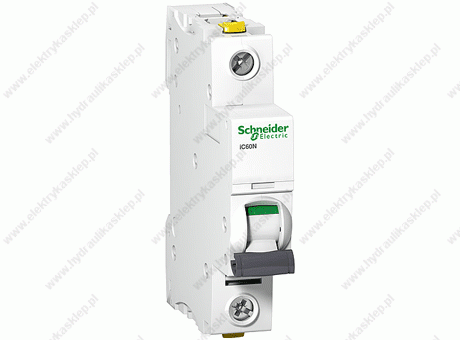 Schneider Electric Wyłącznik nadprądowy serii iC60N, o numerze referencji A9F04116 1-biegunowy prąd znamionowy - 16A charakterystyka C wytrzymałość zwarciowa 6kA zapewnia ochronę przed zwarciami i przeciążeniami możliwość bezpośredniego podłączenia dwóch przewodów o różnych przekrojach optyczny …