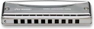Suzuki ProMaster MR-350 C harmonijka ustna Profesjonalna, 10 tonowa harmonijka diatoniczna Specyfikacja: Obudowa - chromowany mosiądz, Grzebień - aluminiowy, Waga- 91 g, Wymiary - 100 x 27 x 20 mm, W zestawie futerał zapinany na zamek błyskawiczny