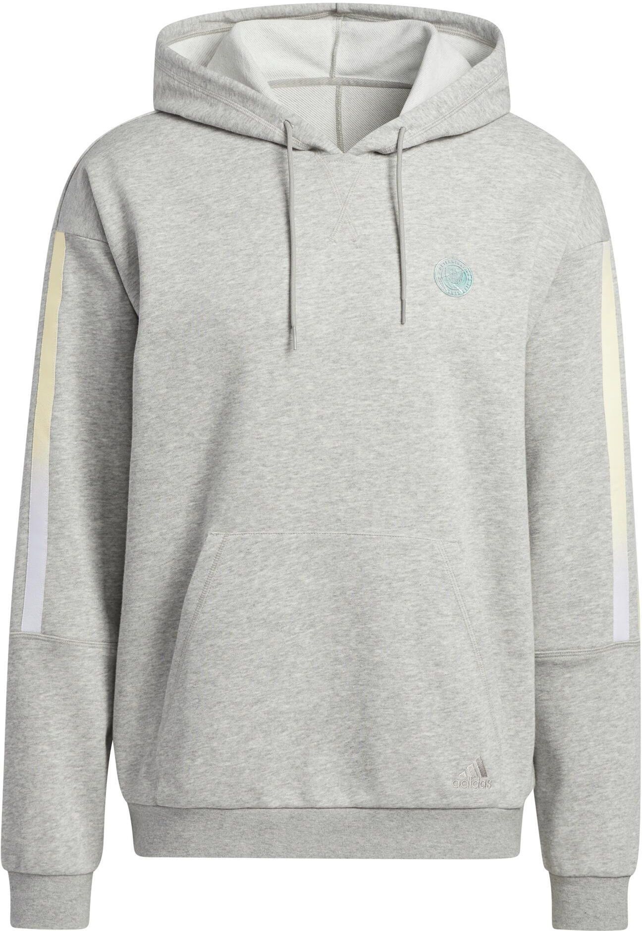 Wyraź swoje zamiłowanie do sportowego stylu, zakładając tą męska bluzę adidas! Model zachowany w duchu sportowego minimalizmu zachwyci każdego mężczyznę preferującego klasyczne rozwiązania. Niezwykle miękka konstrukcja będąca połączeniem bawełnianych i poliestrowych włókien cechuje się niezwykłą wytrzymałością i oddychalnością. Klasyczny krój przyjemnie otula ciało bez ryzyka ograniczenia pełnej swobody ruchów, co z pewnością docenisz w czasie wykonywania codziennych aktywności. Estetyczne ściągacze na mankietach i u dołu bluzy pozwolą Ci korzystnie ułożyć model na sylwetce, a dodatkowo zapobiegną utracie cennego ciepła w chłodniejsze dni. Kaptur regulowany sznurkiem to idealna osłona przed lekkim deszczem i wiatrem. Miejsce na drobiazgi? Znajdziesz je w kieszeni typu kangurka, która zaoferuje również ratunek dla zmarzniętych dłoni. Model w szarej odsłonie dopełniono charakterystycznymi dla marki paskami na rękawach oraz logo Donovana Mitchella, tworząc ponadczasowy projekt. Dyskomfort w ciągu dnia? Z tą męska bluzą adidas możesz o nim zapomnieć! Materiał: 52% bawełna, 48% poliester pochodzący z recyklingu
