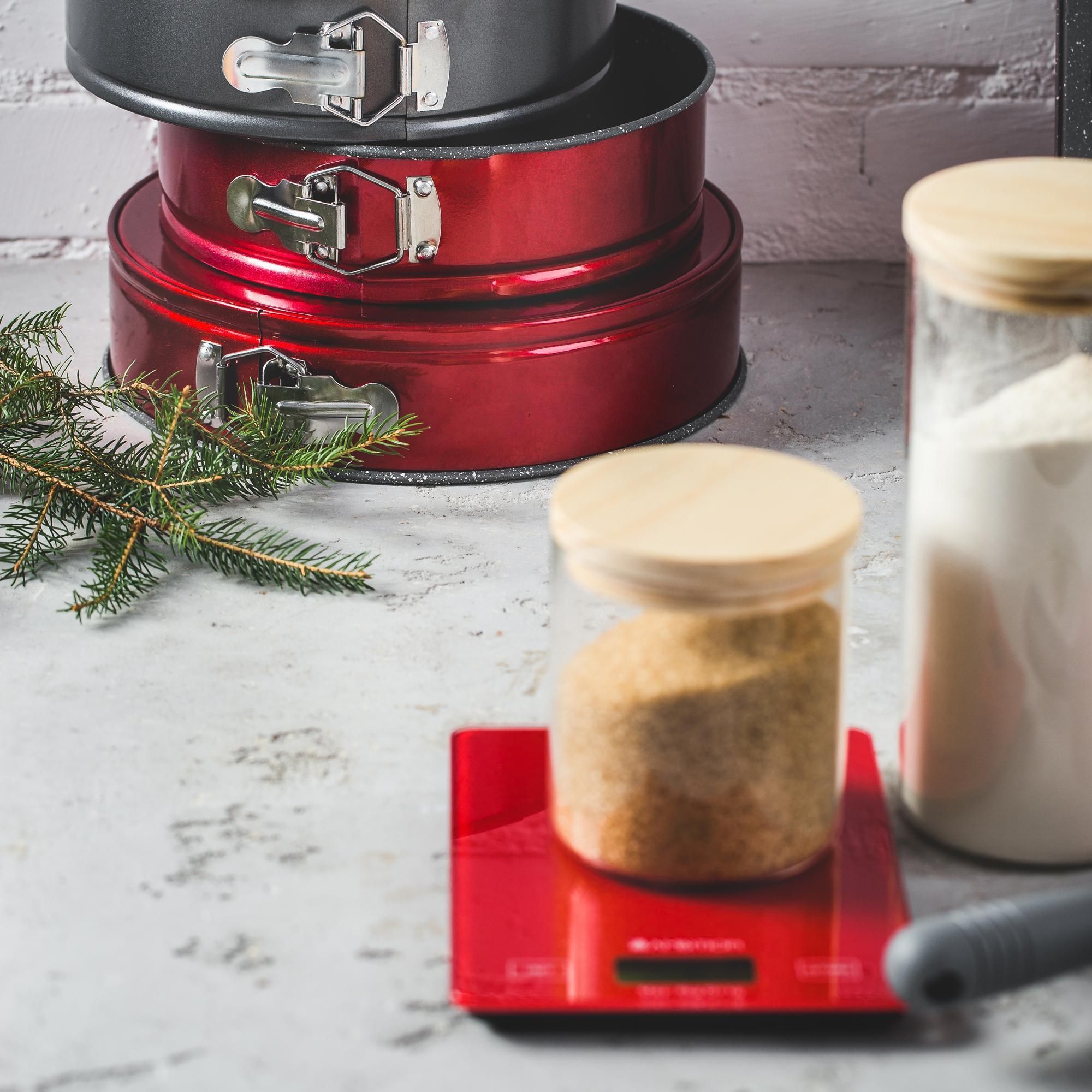 Waga kuchenna Cherry Ambition 5 kg Producent: Ambition Kod produktu: 51996 Waga kuchenna Cherry marki Ambition. Pokazuje wagę z dokładnością do 1 grama. Maksymalne obciążenie wynosi 5 kg. Niezbędny element wyposażenia każdej kuchni. Cechy produktu powierzchnia warzenia wykonana ze szkła hartowanego, dokładność do 1 grama, maksymalne obciążenie do 5 kg, dotykowy przycisk uruchamiający, wyłącza się automatycznie po 2 minutach, zasilana jedną baterią CR2032, wyposażona we wskaźnik niskiego poziomu baterii oraz przeciążenia, posiada funkcję „Tare". Wymiary produktu długość 21,5 cm, szerokość 15 cm, wysokość 1,6 cm, waga 0,42 kg.