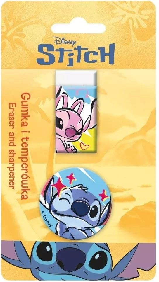 Gumka + temperówka Stitch Beniamin ✅ ✔️ Zestaw z motywem Stitch zawiera gumkę oraz temperówkę. Wyjątkowo giętka i miękka gumka nie pęka, nie twardnieje, nie brudzi się. Temperówka posiada ostrze z stali nierdzewnej. Gumka o wymiarach: 2,1 x 4 x 1 cm Temperówka o wymiarach: 3,5 x 1,7 cm Blister o …