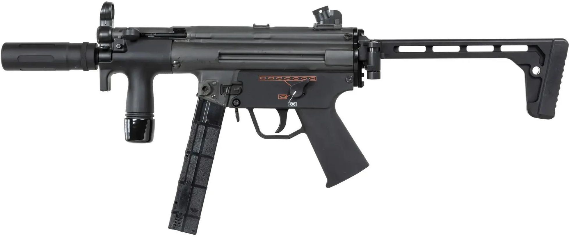 Elektryczna replika pistoletu maszynoweg wykonana ze stali i tworzywa ABS. Górną część korpusu, śruby i piny oraz magazynek wykonano ze stali, natomiast dolną część korpusu, chwyt przedni oraz kolbę z wytrzymałego tworzywa ABS. Model wyposazono w system symulacji odrzutu i pracy zamka, co znacząco zwiększa realizm prowadzonej rozgrywki.