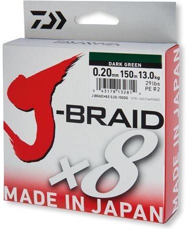 Plecionka Daiwa J-Braid X8 0,13mm 150m ciemnozielona 12751-013 Nowe plecionki DAIWA J-Braid cechuje 8-krotny splot oraz harmonijna kompozycja parametrów, dzięki którym spełniają wymagania zarówno morskiego połowu dorszy, halibutów oraz czarniaków, jak i lekkiego spinningowego połowu okoni i …
