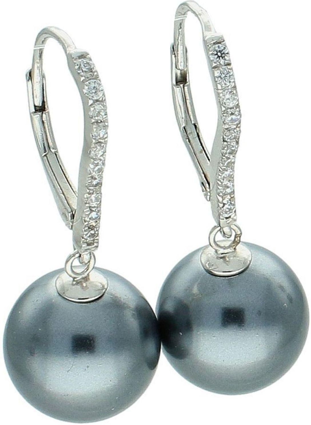 Diament Srebrne kolczyki 925 z szarą perłą i białymi cyrkoniami | 3051221129 Solec Kujawski