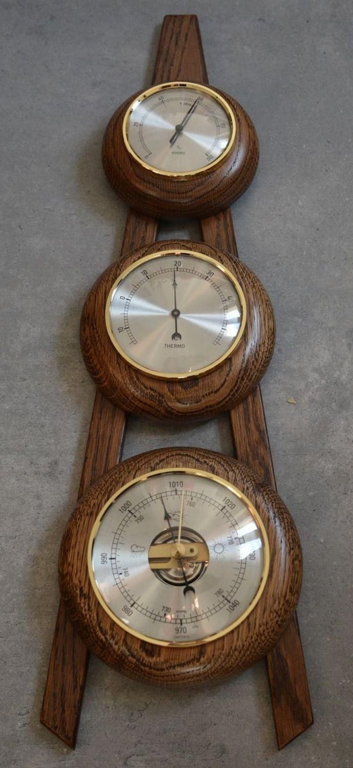 Drewniana stacja pogody Barometr Termometr Higrometr Dąb BOLEK-01 Tradycyjna stacja pogody na pewno świetnie się sprawdzi w Twoim domu, nie tylko z racji swojej funkcji pomiarowej ale także jako oryginalny element dekoracyjny. Barometr mieści się w drewnianej obudowie w kolorze dębu. Termometr pokazuję temperaturę w stopniach Celsjusza. Barometr w stylu vintage idealnie wpasuję się w każde wnętrze i nada miejscu nowego i świeżego wyglądu. Tolerancja błędu wynosi do +/- 1°C. Barometr: Pomiar ciśnienia atmosferycznego Termometr: Pomiar temperatury wewnętrznej Higrometr: Pomiar wilgotności powietrza WYMIARY: WYSOKOŚĆ: 48 cm SZEROKOŚĆ: 14 cm GRUBOŚĆ: 5 cm