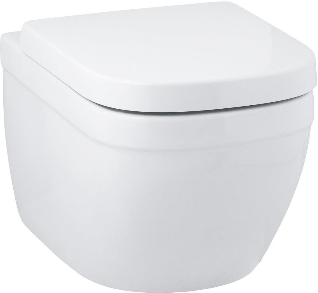 GROHE Euro Ceramic - miska WC wisząca biała + deska wolnoopadająca 39328000 + 39330002 Informacje o zestawie: GROHE Euro Ceramic – miska WC wisząca biała 39328000 - Rodzaj: zwykła - Typ: podwieszany - Kształt: owalny - Materiał: ceramika - Odpływ: poziomy - Kolor: biały - Długość: 540 mm - …