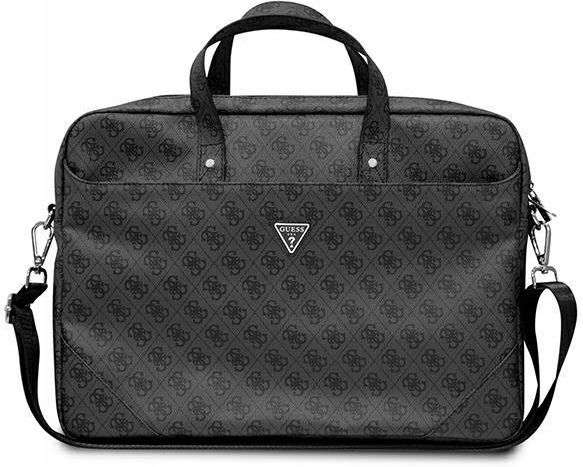 Guess Saffiano 4G Triangle Logo Computer Bag - Torba na notebooka 16" (czarny) GUCB15P4TK Guess Saffiano 4G Traingle Logo torba na notebooka o przekątnej 15/16 cali. Wykonana ze skóry ekologicznej. Produkt charakteryzuje się jednym z bardziej znanych motywów używanych przez Guess, emblematy 4G które umiejscowiono na przyjemnej w dotyku fakturze saffiano. Ozdobiona trójkątnym logo Guess. Połączenie tych elementów sprawia, że całość prezentuje się bardzo elegancko. Komora główna wyścielona miękkim w dotyku materiałem idealnie zabezpiecza urządzenie przed zarysowaniami i brudem. Dodatkowo z przodu podręczna kieszeń na akcesoria zapinana na suwak. Obustronne zamki i odpinany, regulowany pasek na ramię zapewniają wygodę użytkowania. Z tyłu dodatkowy pasek, który umożliwia mocowanie do walizki podróżnej. Elementy mocujące w kolorze srebrnym. Cechy produktu: · Torba na notebooka o przekątnej 15" / 16" · Przyjemna faktura saffiano ozdobiona logo 4G · Trójkątne logo Guess · Ochrona całego urządzenia · Odpinany, regulowany pasek na ramię i obustronne zamki · Wygodne rączki · Rozmiary zewnętrzne: 410 x 310 x 45 mm · Wymiary wewnętrzne: 400 x 305 x 40 mm · Oficjalna licencja marki Guess
