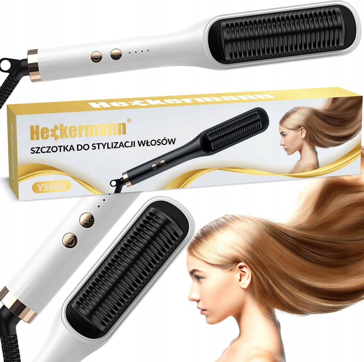 Prostownica do włosów ceramiczna YS668 biała Szybkie i wygodne prostowanie włosów? Tak, to jak najbardziej możliwe! Wybierz ceramiczną szczotkę do prostowania włosów, dzięki której błyskawicznie stworzysz nieskazitelną fryzurę każdego dnia! Prostownica ceramiczna z grzebieniem to innowacyjne narzędzie do stylizacji włosów, które oferuje wyjątkową wygodę i efektywność. Dzięki czterem poziomom regulacji temperatury, jest dostosowana do różnych rodzajów włosów, umożliwiając personalizację procesu stylizacji. Szybkie nagrzewanie sprawia, że użytkownik oszczędza czas, a prosta obsługa sprawia, że nawet osoby bez doświadczenia mogą łatwo osiągnąć pożądane efekty. Wyposażona w grzałkę PTC, prostownica zapewnia stabilną i równomierną temperaturę, chroniąc jednocześnie włosy przed uszkodzeniem. Wykorzystanie wysokiej jakości ceramicznego tworzywa gwarantuje nie tylko trwałość, ale także delikatność w dotyku, co sprawia, że jest to idealne narzędzie do codziennego użytku. Dlaczego warto wybrać ten produkt? 4 poziomy regulacji temperatury, szybkie nagrzewanie, prosta obsługa, grzałka PTC, wysoka jakość ceramicznego tworzywa, budowa 3D zapobiegająca oparzeniom. Uzyskaj wymarzony efekt Masz falowane lub kręcone włosy, ale codzienne lub okazyjnie chcesz mieć proste? Ceramiczna szczotka do prostowania włosów to produkt, który pozwoli Ci cieszyć się wreszcie ulubioną fryzurą! Szczotka prostująca włosy jest bardzo prosta w obsłudze. Wystarczy, że ją włączysz za pomocą jednego przycisku i ustawisz odpowiednią temperaturę, a już po 20 sekundach będzie gotowa do prostowania. Jak to działa? Urządzenie powoli przesuwasz od nasady włosów po ich końce i cieszysz się efektem! Bezpieczeństwo i wysoka jakość dla Ciebie Ceramiczna jonowa szczotka do prostowania włosów wyposażona została w aż 4 poziomy regulacji temperatury - 130, 150, 180 i 200℃, dzięki czemu dobierzesz odpowiednią temperaturę do swoich potrzeb. Wybrana temperatura szczotki utrzymywana jest cały czas na jednym poziomie - nie doświadczysz żadnych niespodziewanych skoków, co zapobiega zniszczeniu włosów i pozwoli Ci uzyskać idealny efekt stylizacji Wykonana z najlepszych materiałów Szczotka zbudowana została z wodorozcieńczalnego szkliwa ceramicznego, które redukuje elektryzowanie się włosów. Urządzenie posiada zabezpieczenie przeciw oparzeniom. Szczotka do włosów jest lekka i bardzo wygodna w użytkowaniu. Kabel zasilający obraca się o 360°, co poprawia komfort podczas prostowania włosów. Dokładność w każdym calu Szczotka prostująca posiada budowę 3D, dzięki czemu precyzyjnie prostuje włosy, gdyż dokładnie otacza je z każdej strony. Szczotką do prostowania stworzysz gładką i elegancką fryzurę oraz ujarzmisz plączące się i niesforne włosy. Specyfikacja techniczna Moc: 45W Rodzaj grzałki: PTC Wymiary: 27,5x4,5cm Kolory: Biała SKU: 0000384