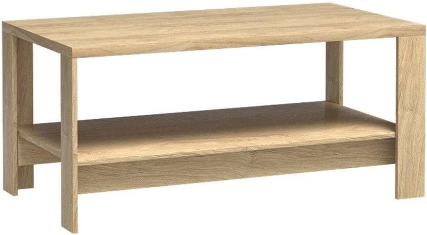 Stolik kawowy Mediolan-18 to idealny dodatek do salonu. Wykonany z wytrzymałej płyty laminowanej, zachwyca jasnym, nowoczesnym designem. Dzięki szerokiej półce na książki i drobiazgi, umożliwia wygodne relaksowanie się przy ulubionej kawie. Montaż DIY!