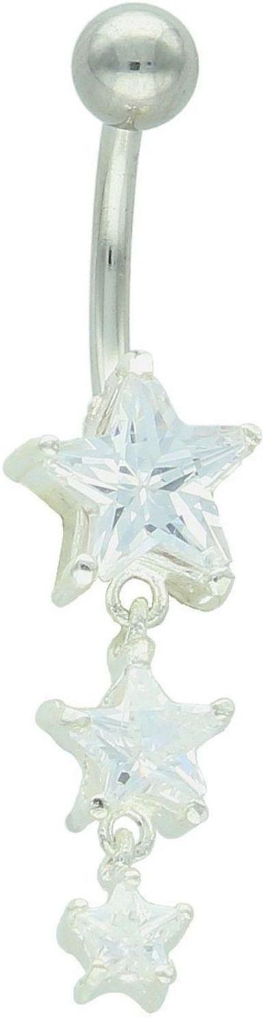 Kolczyk do pępka srebrny 925 – Trzy wiszące gwiazdki z cyrkoniami | Stylowa biżuteria damska Solec Kujawski