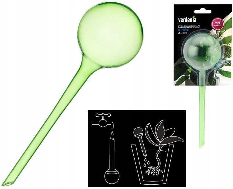 Automatyczne podlewanie roślin bez wysiłkuKula nawadniająca to niezawodna pomoc w pielęgnacji roślin doniczkowych, zarówno w domu, jak i na balkonie. Doskonale sprawdza się podczas urlopu, weekendowego wyjazdu lub dla zapominalskich – wystarczy ją napełnić i wbić w ziemię. Resztą zajmie się sama.Zaprojektowana tak, by stopniowo uwalniać wodę w miarę wysychania gleby. Dzięki temu Twoje rośliny otrzymują dokładnie tyle wilgoci, ile potrzebują – bez przelewania i bez przesuszania.Zastosowanie:rośliny doniczkowe w domukwiaty balkonowe i tarasowezioła kuchenne w doniczkachmałe krzewy w pojemnikachGłówne zalety:Nawadnianie nawet przez 7 dni bez podlewaniaProsta obsługa – wystarczy napełnić i umieścić w ziemiSamodzielne dozowanie wody w zależności od potrzeb roślinyPomaga utrzymać odpowiedni poziom wilgoci w glebieUniwersalna – pasuje do większości doniczekWielorazowego użytkuInstrukcja użycia:Napełnij kulę wodą.W ziemi zrób otwór za pomocą patyczka lub palca.Umieść końcówkę kuli w przygotowanym otworze.Kula będzie uwalniać wodę w miarę potrzeby rośliny.Specyfikacja:Materiał: tworzywo sztuczneKolor: zielonyPrzeznaczenie: rośliny doniczkowe, balkonowe, krzewyDziałanie: do 7 dni (w zależności od wielkości doniczki i rośliny)Zadbaj o rośliny nawet wtedy, gdy nie możesz być w domu. Wybierz kulę samonawadniającą i podlewaj rośliny sprytnie – tylko wtedy, gdy tego potrzebują.
