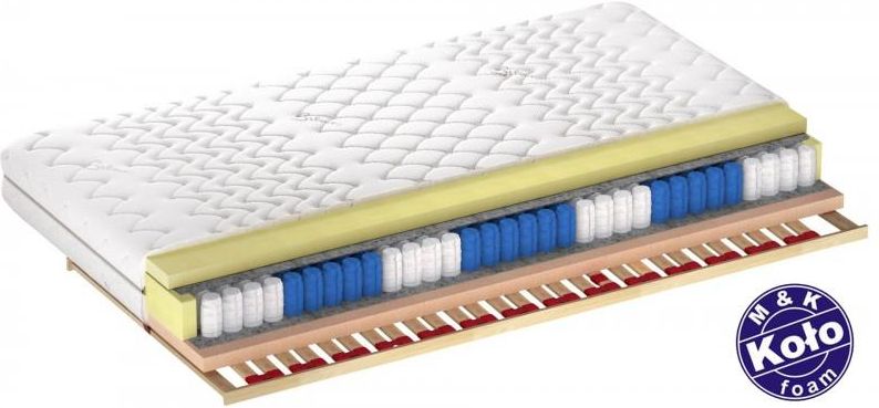 Materac Pocket H3 Materac Pocket H3 to siedemio-strefowy materac sprężynowy wykonany z wysokogatunkowego drutu o twardości H3. Materac stworzony został z wysokoelastycznej pianki Kaltschaum H2 z jednej strony oraz wysokoelastycznej pianki Kaltschaum H3 z drugiej strony. Sprężyny kieszonkowe znajdują się w oddzielnych i niezależnych woreczkach przez co materac zapewnia idealne dopasowanie do ciała, a tym samym zapewnia bardzo wysoki komfort spania. W komplecie z materacem znajduje się zdejmowany pokrowiec antyalergiczny, przystosowany do prania. Budowa materaca Pocket H3 • 1.Wysokoelastyczna pinka Kaltschaum posiada otwartokomórkową strukturę co bezpośrednio przekłada się na odpowiednią cyrkulację powietrza. • 2.Wyjątkowo duża ilość sprężyn o twardości H3 oraz ich strefowość zapewni wręcz idealne dopasowanie do fizjologicznej budowy ciała użytkownika. • 3.Obustronnie zastosowana pianka Kaltschaum o dwóch różnych twardościach umożliwiają wybór tej najwłaściwszej. • 4.Pokrowce z serii Exlcusive szyte są z najwyższej jakości włókien które idealnie dopasują się do danego materaca. • 5.Rzeczywista długość i szerokość materaca może się różnić +/-2cm ze względu na pokrowiec. Produkt składa się z wybranego wkładu materaca oraz wybranego pokrowca. Twardość materaca Pocket H3 Materac Pocket H2 występuje w twardości H2 (średni) oraz H3 (twardy). Wersja H2 dostępna po kliknięciu tutaj. Twardość jest odczuciem wysoce subiektywnym. Dla kogo polecany? Materac wykonany został z materiałów antyalergicznych posiadających certyfikaty OEKO-TEX oraz PZH gwarantujące bezpieczeństwo użytkowników w szczególności alergików i astmatyków. Materac Pocket H3 jest odpowiedni dla osób posiadających problemy z kręgosłupem , a także osób, które często zmieniają pozycje snu. Ze względu na zastosowane sprężyny woreczkowe będzie odpowiedni dla osób starszych, dla par o zróżnicowanej budowie ponieważ w łatwy sposób zmienią pozycję podczas snu. Wersja H3 przeznaczona jest dla osób, które lubią twarde podłoża. Użyte surowce • 1.Pianka wysokoelastyczna - Zimno tłoczona pianka Kaltschaum zbudowana została z milionów pęcherzyków w których idealnie cyrkuluje powietrze, nie gromadzi w swojej strukturze wilgoci, roztoczy czy pleśni, reguluje również temperaturę ciała, dlatego wybierana jest przez alergików i astmatyków. Duża ilość kanalików oraz wysoka gęstość pianki wpływa na elastyczność oraz sprężystość punktową, dzięki temu perfekcyjnie dopasowuje się do anatomicznego kształtu ciała. Dzięki wysokim parametrom technologicznym uznawana jest za jedną z najmocniejszych pianek. • 2.Sprężyny Punktoflex - Sprężyny woreczkowe Punktoflex posiadają 7 stref odpowiadających anatomicznej budowie ciała człowieka. Każda sprężyna z wysokogatunkowego drutu została umieszczona w osobnych woreczkach w celu zwiększenia ich indywidualnej pracy, a co za tym idzie lepszego podparcia kręgosłupa. Pielęgnacja pokrowca Regularne dbanie o pokrowiec materaca Pocket H3 pomoże wydłużyć cykl życia zapewniając świeżość oraz miękkość. Zalecenia dotyczące pokrowca: • Prać ręcznie lub w pralce o określonej temperaturze • Nie wybielać • Nie można suszyć w suszarkach bębnowych • Nie zalecamy prasowania • Nie czyścić chemicznie Kilka słów o marce M&K Foam Koło Marka M&K Foam Koło jest liderem wśród polskich producentów materacy, łóżek, poduszek i innych produktów potrzebnych do sypialni. Od 1992 roku tworzy asortyment na bazie komponentów certyfikowanych pozyskanych od najlepszych dostawców. Wieloletnie doświadczenie specjalistów , którzy posiadają nie tylko wiedzę teoretyczną, ale również praktyczną, wpływa w znacznym stopniu na precyzję konstrukcji oraz jakość wykonania wszystkich produktów dostępnych w ofercie M&K Foam Koło w tym materaca Pocket H3. Firma zlokalizowana jest w mieście Koło skąd transportowane są wszystkie produkty do Twojego domu. Zalecany stelaż Materac sprężynowy Pocket H3 idealnie współgra ze stelażem elastycznym o gęstym rozstawie listew. Stelaż elastyczny ma za zadanie umożliwić cyrkulację powietrza w dolnej części materaca. Materac należy użytkować na odpowiednim stelażu z naszej oferty. Konkurencyjne stelaże mogą być gorszej jakości i nie spełniać swojej roli, a nawet uszkodzić materac. W takim przypadku reklamacja nie zostanie uwzględniona. Szczególnie polecane są stelaże z listew brzozowych np. Twinpack oraz bukowych np. Duoflex czy Trioflex. Materac Pocket H3 posiada standardowe rozmiary 80x200, 90x200, 100x200, 120x200, 140x200, 160x200, 180x200, 200x200. Inne wymiary na życzenie klienta.