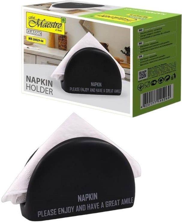 Maestro MR20029-44 serwetnik. Poszukując niezbędnych akcesoriów kuchennych nie można zapomnieć o serwetniku. Ten serwetnik jest idealnym dodatkiem do zastawy stołowej. Nawet zwykłe, białe serwetki wyglądają w nim elegancko. A może potrzebujesz w kuchni podręcznego podstawka do kartek na notatki... …