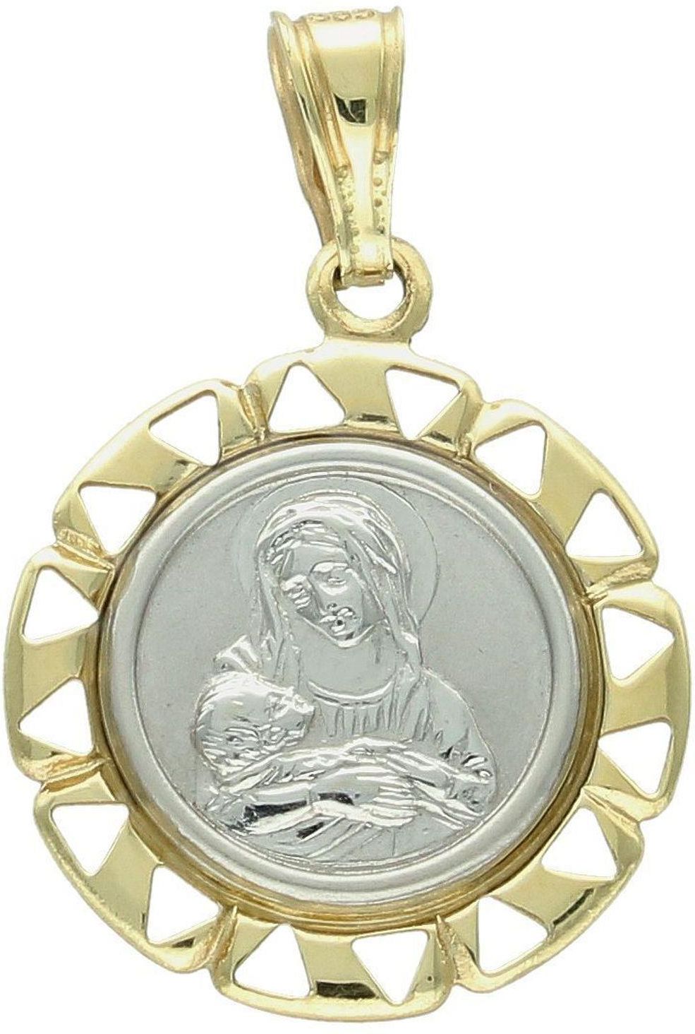 Medalik z białego złota Matka Boska z Dzieciątkiem, zawieszka pr 585 Solec Kujawski