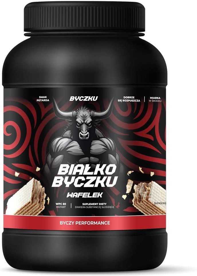 Byczku Białko wafelek proszek 1000 g Suplement diety Białko Byczku wafelek to koncentrat białka serwatkowego będący suplementem diety o wysokiej zawartości białka. Produkt przeznaczony dla osób dorosłych. Białko przyczynia się do wzrostu masy mięśniowej i pomaga w jej utrzymaniu. Białko pomaga w …