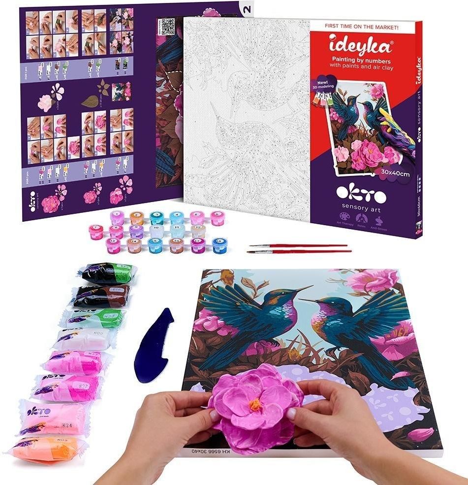 Rozwijanie kreatywności stanie się prawdziwą przygodą dzięki zestawowi artystycznemu z masy plastycznej, która łączy w sobie magię malowania z fascynującym światem trójwymiarowej sztuki. Ten wyjątkowy zestaw pozwoli stworzyć niezwykłego cuda w formie trójwymiarowego obrazu przy użyciu kolorowej i przyjemnej w dotyku masy plastycznej. Płotno, instrukcja, narzędzia do modelowania, zestaw mas plastycznych do modelowania powietrznego, zestaw farb do malowania, pędzel NAZWA MALOWANIA PO NUMERACH 30X40CM KOLIBRY ZAKOCHANE PRODUCENT OKTO EAN 4820199479564 Znajdź podobne według klucza: OKTO (699239)