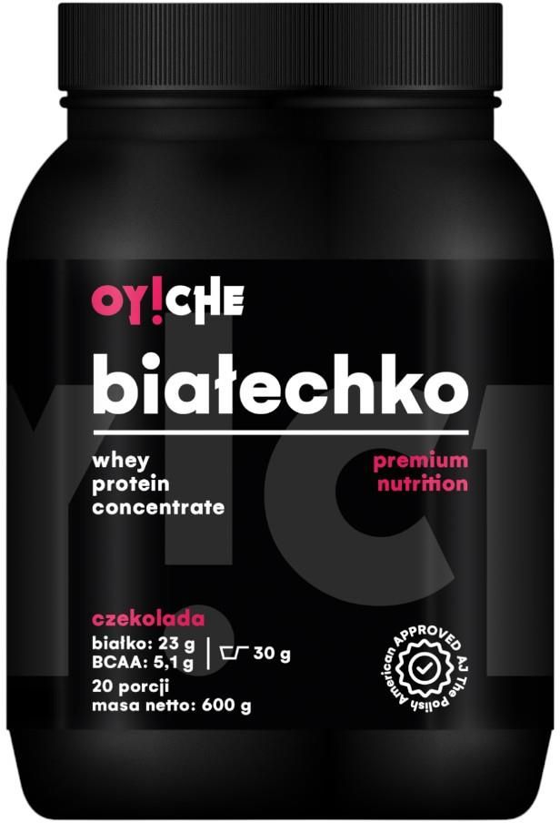 OY!CHE Białechko Słony karmel – białko, które smakuje i działaSięgnij po OY!CHE BIAŁECHKO, wysokiej jakości odżywkę białkową WPC dostępną w czterech smakach: wanilia, truskawka, słony karmel i czekolada. To idealny wybór, jeśli chcesz wspierać regenerację mięśni, budować masę lub uzupełniać dietę w pełnowartościowe białko.Dlaczego warto?Pełnowartościowe białko z kompletem aminokwasów, w tym BCAA.Doskonały smak, który sprawia, że suplementacja to przyjemność.Wybór trzech rozmiarów opakowań: 600 g