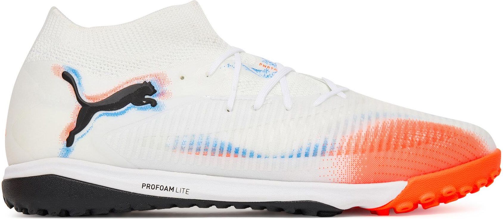 Męskie buty piłkarskie Puma eksponują Twój niepowtarzalny styl gry. Półprofesjonalne turfy z zaawansowaną podeszwą są praktycznym rozwiązaniem na klubowe mecze rozgrywane na sztucznej nawierzchni. Odświeżony design butów Puma jest spójny z kolekcją Untamed Pack utrzymanej w ciekawej kolorystyce. Sylwetka dopełniona wyraźnymi detalami eksponuje nowoczesną sylwetkę butów, a strefy z logo Puma podkreślają dynamiczny fason butów. Cholewka z bardzo rozciągliwej przędzy z 4-kierunkowym stretchem w połączeniu z elastycznym dzianinowym kołnierzem zapewnia doskonałe dopasowanie i wsparcie. Wypukłe elementy i technologia GripControl zapewniają bardzo dobry kontakt z piłką nawet przy dużych prędkościach. Wzmocnienie PWRTAPE w śródstopiu dba o ścisłe dopasowanie i stabilność. Gumowa podeszwa zewnętrzna Flexgility zapewnia 360-stopniową zwinność i wybuchowe przyspieszenie, które zaskoczy przeciwników. Zdominuj grę i bądź zwycięzcą na boisku, rozgrywając mecze w butach piłkarskich Puma Future. Pozostań niedościgniony i skuteczny na boisku. Dane techniczne:· Bardzo rozciągliwa cholewka i elastyczny kołnierz z dzianiny zapewniają doskonałe dopasowanie i wsparcie· Wypukłe linie siateczki i technologia GripControl zwiększające przyczepność i kontrolę nad piłką· Wzmocnienie PWRTAPE w śródstopiu zapewniające ścisłe dopasowanie i stabilność· Gumowa podeszwa zewnętrzna Flexgility zapewnia 360-stopniową zwinność· Cholewka jest wykonana w co najmniej 20% z materiału pochodzącego z recyklingu