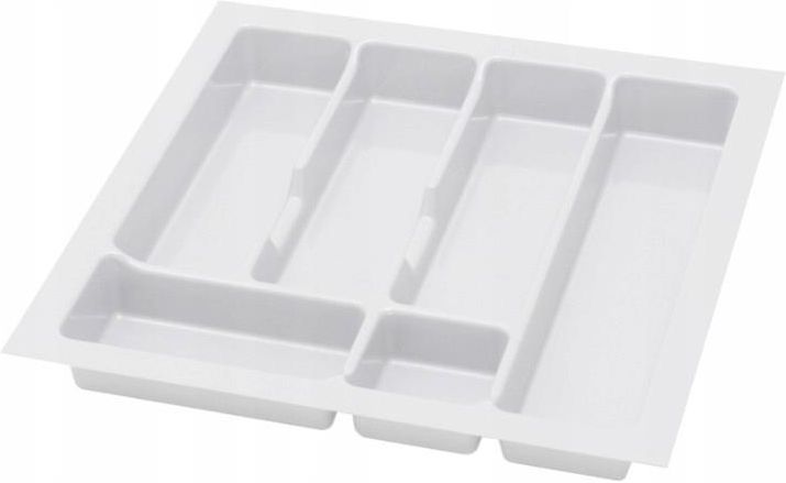 Wkład do szuflad 50cm (szerokość korpusu) oraz głębokości nominalnej szuflady 45cm Wymiar wkładu (z możliwością docięcia): 430x430mm Wkłady wykonane są z tworzywa sztucznego o grubości 1,6mm. Produkt został zaprojektowany w taki sposób, aby umożliwiał składowanie najbardziej pospolitych przedmiotów kuchennych w szufladzie. Wkłady można dociąć o kilka mm tak aby dopasować je do różnego rodzaju szuflad, zróżnicowanych producentów. Cechy: kolor: biały do szuflady o szerokości: 50cm (wym. zewn.) do głębokości nominalnej szuflady: 45cm grubość tworzywa: 1,6mm