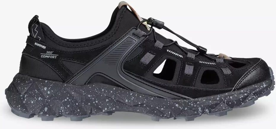 Wygodne sandały turystyczne, które są idealnym towarzyszem na cieplejsze dni, dzięki oddychającej, otwartej przestrzeni, zaawansowanej technologii absorbcji energii w pięcie i mocnej przyczepności. Dzięki perforowanej cholewce i technologii SJ Foam Adventure zapewniają komfort noszenia oraz doskonałą amortyzację. Model ten charakteryzuje się elastycznym materiałem wierzchnim, który dopasowuje się do stopy, eliminując punkty nacisku. Dane techniczne Model: Lanos Rozmiar: 43 [EU] Kolor: Czarny Materiał cholewki: Tekstylny Podszewka: Włóknina