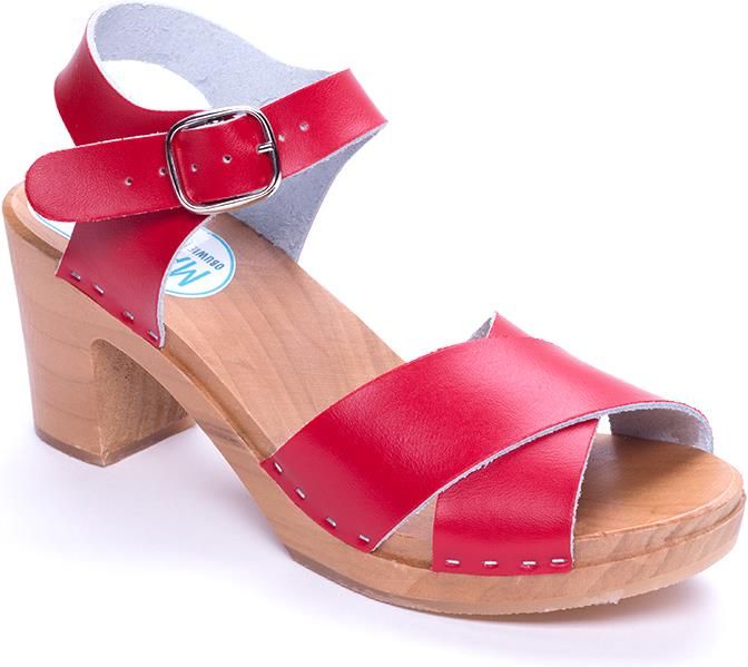 Sandały na koreczku 7.5 cm skóra bydlęca koloru czerwonego, drewno - topola. Kolor spodu możesz wybrać dowolny (wpisując w uwagach) Uwagi pojawią się w trakcie nastepnego kroku podczas zakupu