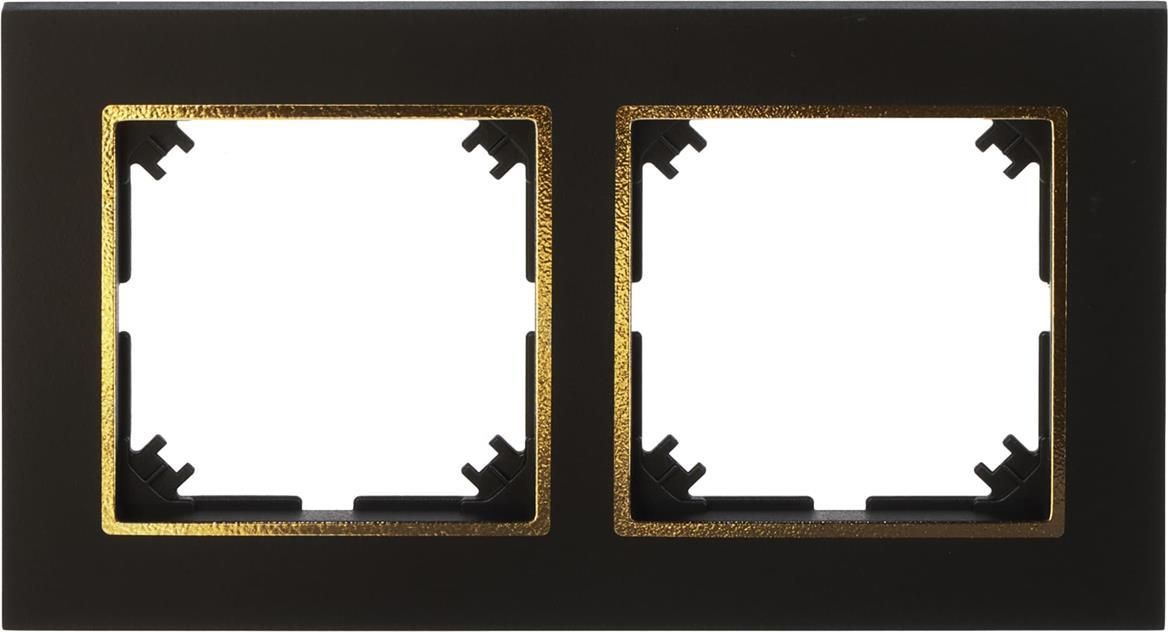 SANTRA ramka podwójna Dane techniczne: wymiary wew: 90x161mm stopień ochrony: IP20 sposób mocowania: montaż zaciskowy materiał: tworzywo sztuczne kolor: czarny/złoty krotność: 2x